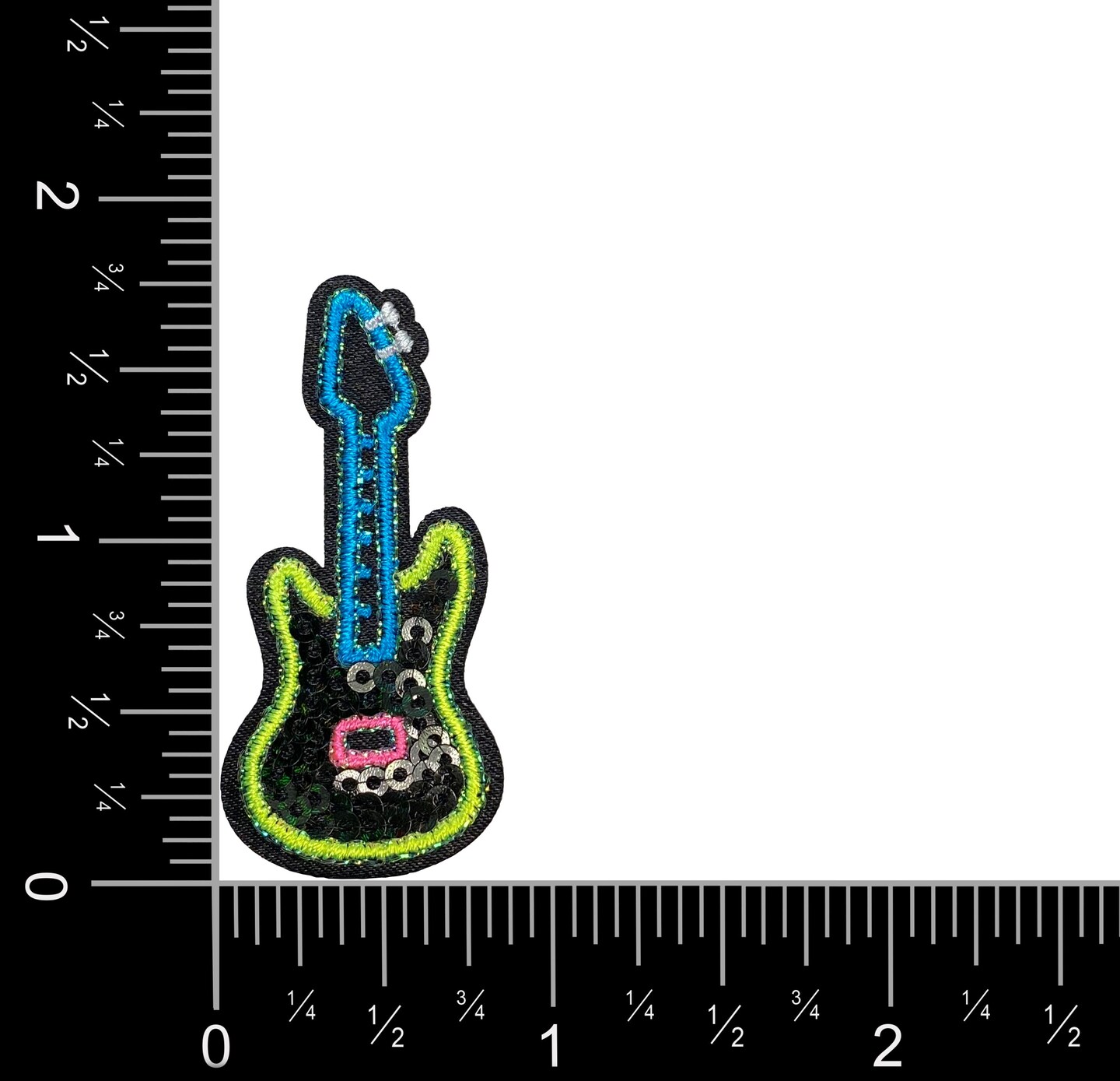 Black Sequin Guitar, Embroidered, Iron on Patch