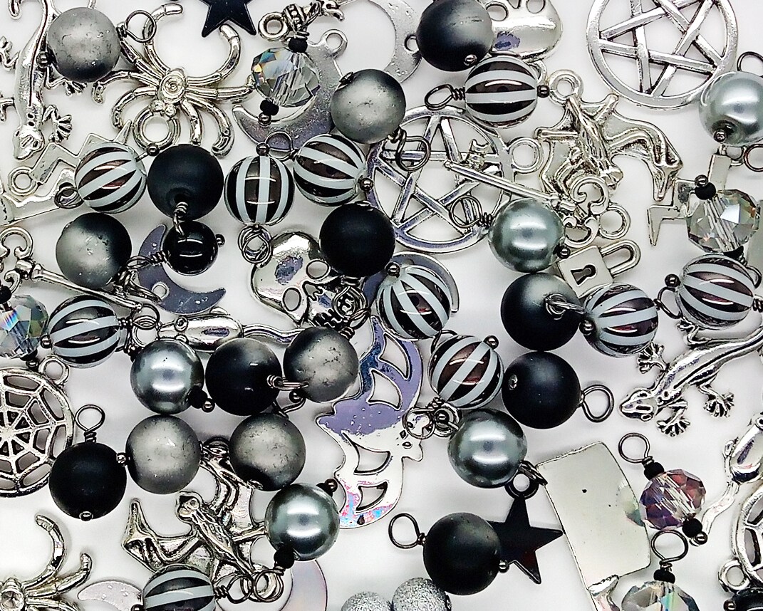 Black & Silver Charm Assortment, 20 pieces, Goth or Creepy Charm Mix, Adorabilities