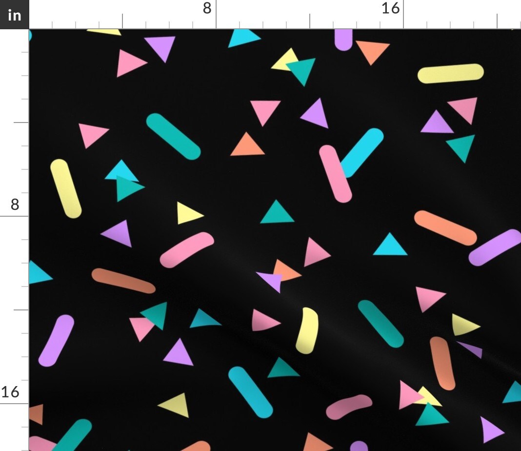 Black Sprinkles Pink Green Yellow 80S Colorful Party Geometric Kids Neon Purple Shapes Custom Printed Fabric by Spoonflower Various Fabrics by the Yard or Fat Quarter