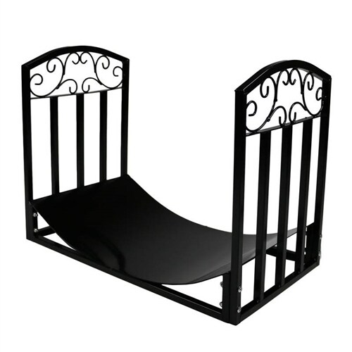 Black Steel Firewood Holder Log Rack 24 Inch Indoor Outdoor Log Storage with Scroll Design