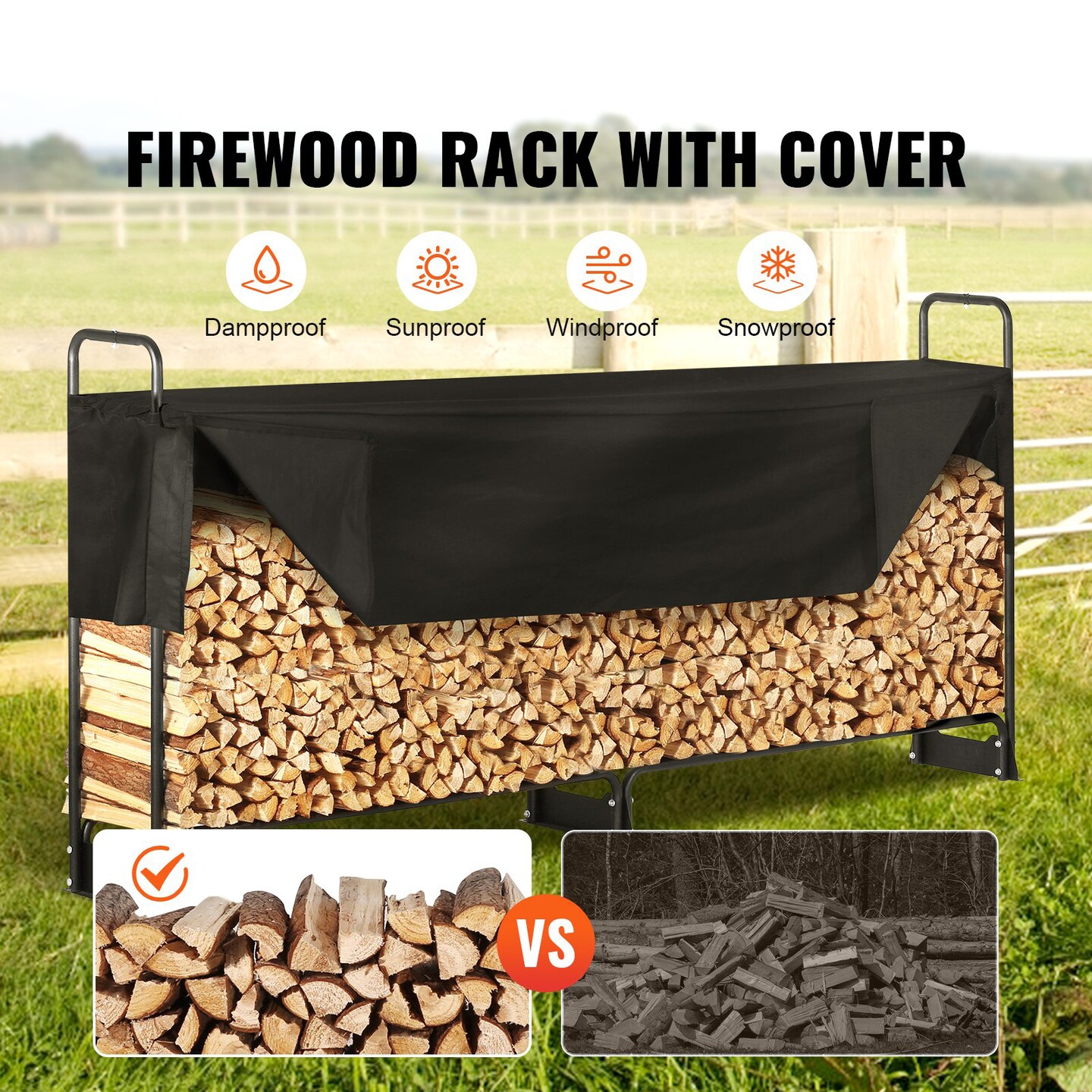 Black Steel Firewood Rack with 600D Oxford Cover, Tubular Frame and Cord Capacity