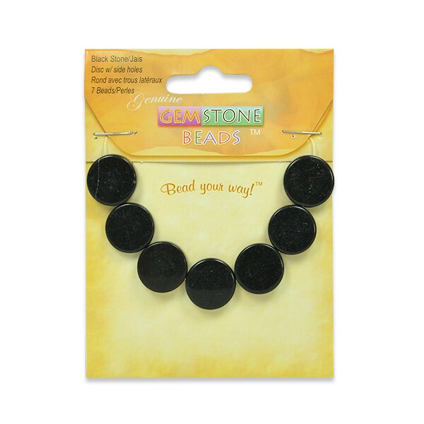 Black Stone Disk Beads - 15mm - 7 pcs.