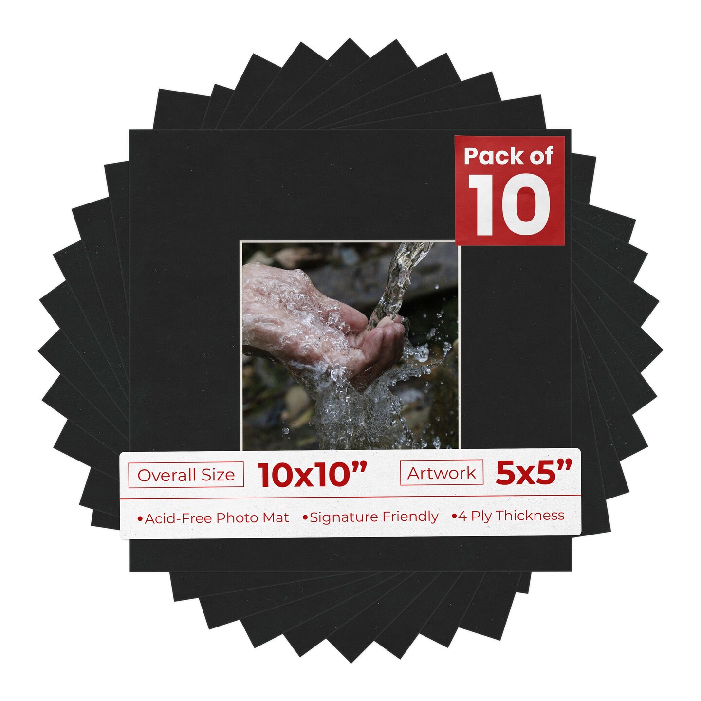 Black Suede Mat Board for 10x10 Frames - Fits 5x5 Photos