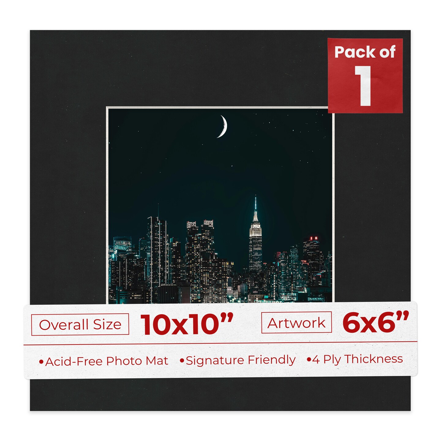 Black Suede Mat Board for 10x10 Frames - Fits 6x6 Photos