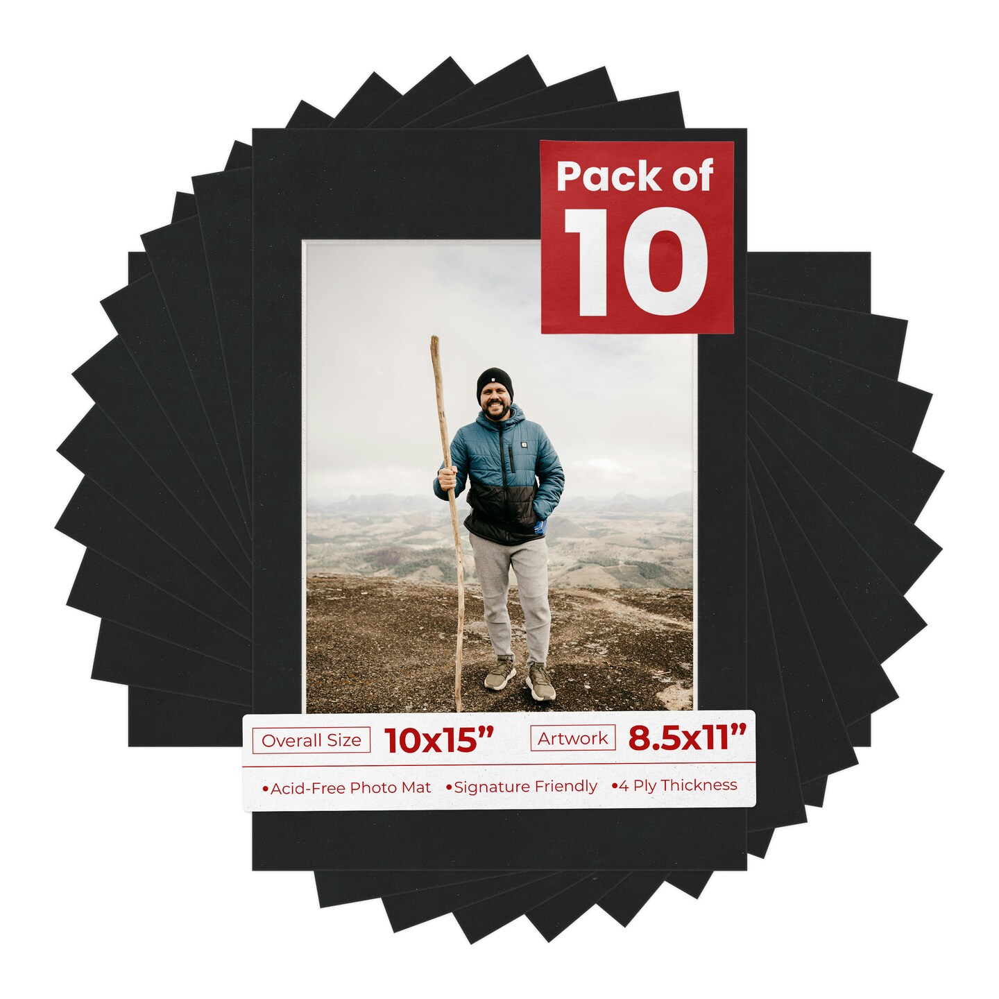 Black Suede Mat Board for 10x15 Frames - Fits 8.5x11 Photos