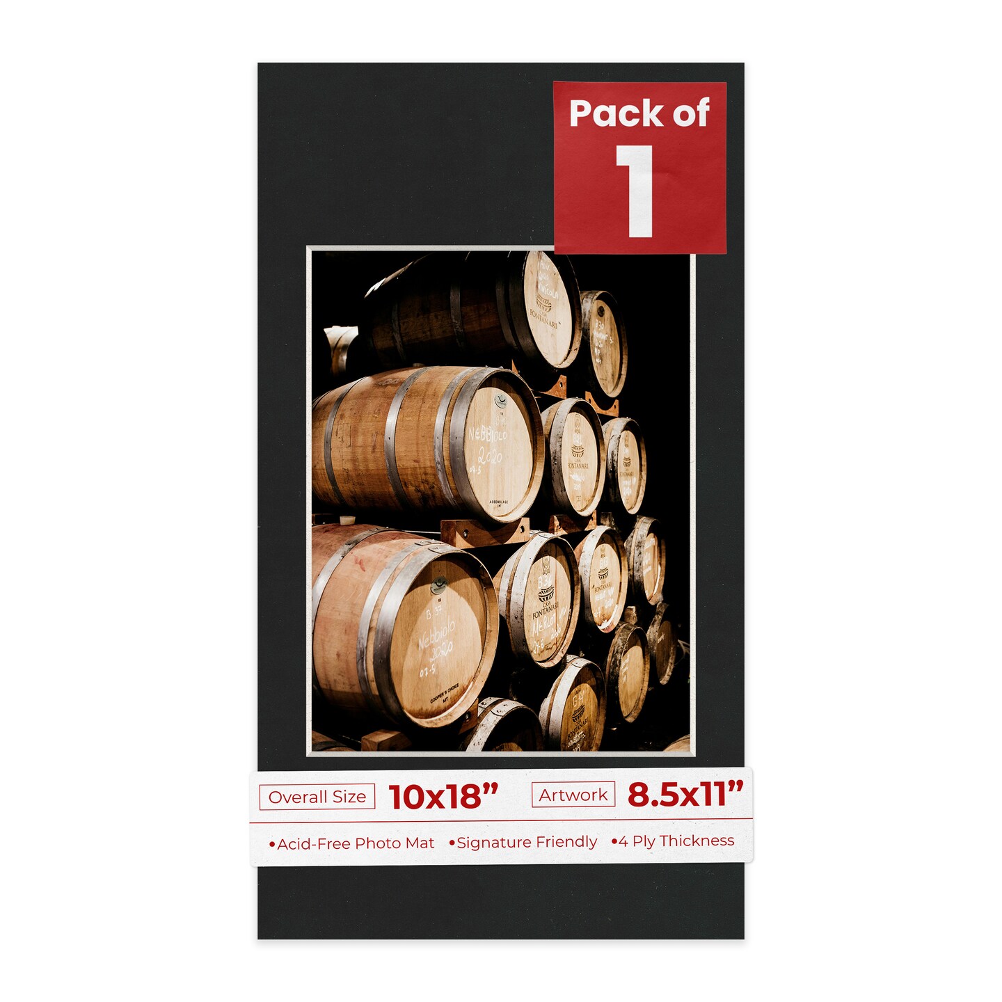 Black Suede Mat Board for 10x18 Frames - Fits 8.5x11 Photos