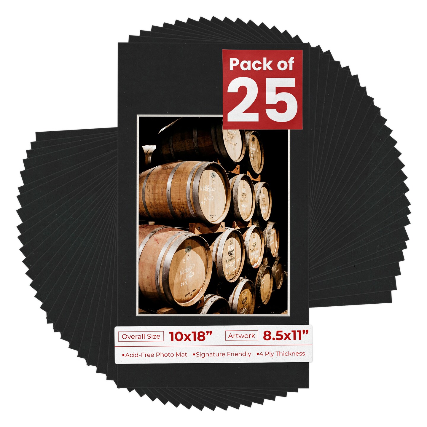 Black Suede Mat Board for 10x18 Frames - Fits 8.5x11 Photos