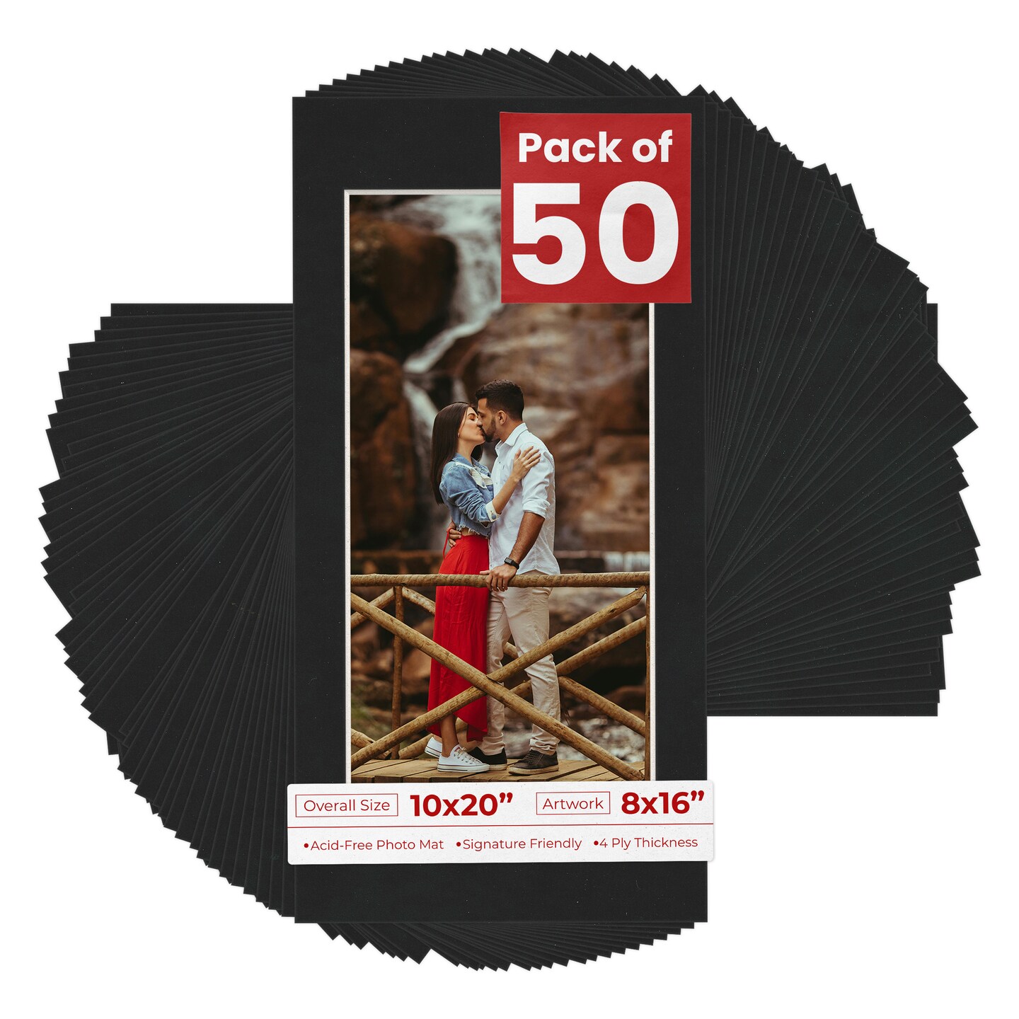 Black Suede Mat Board for 10x20 Frames - Fits 8x16 Photos