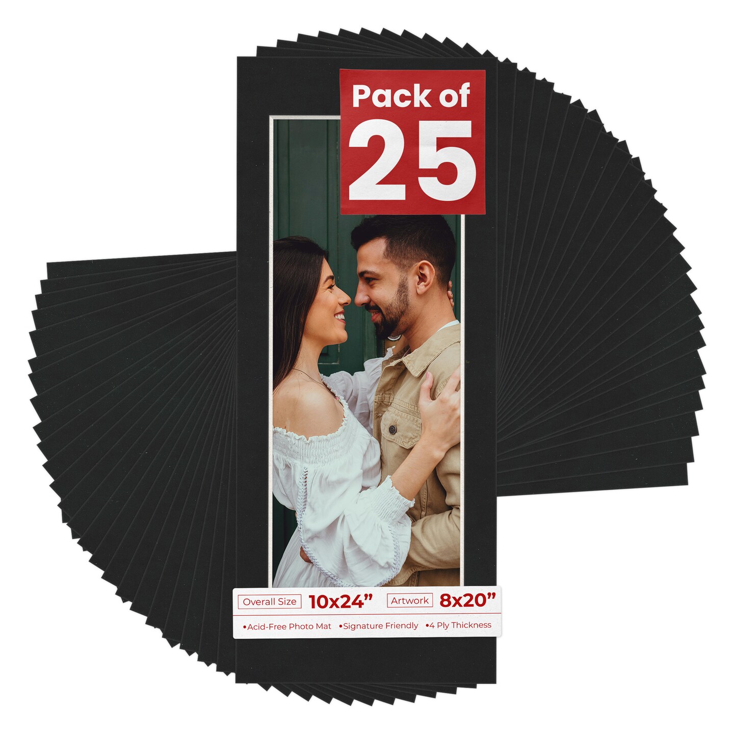 Black Suede Mat Board for 10x24 Frames - Fits 8x20 Photos