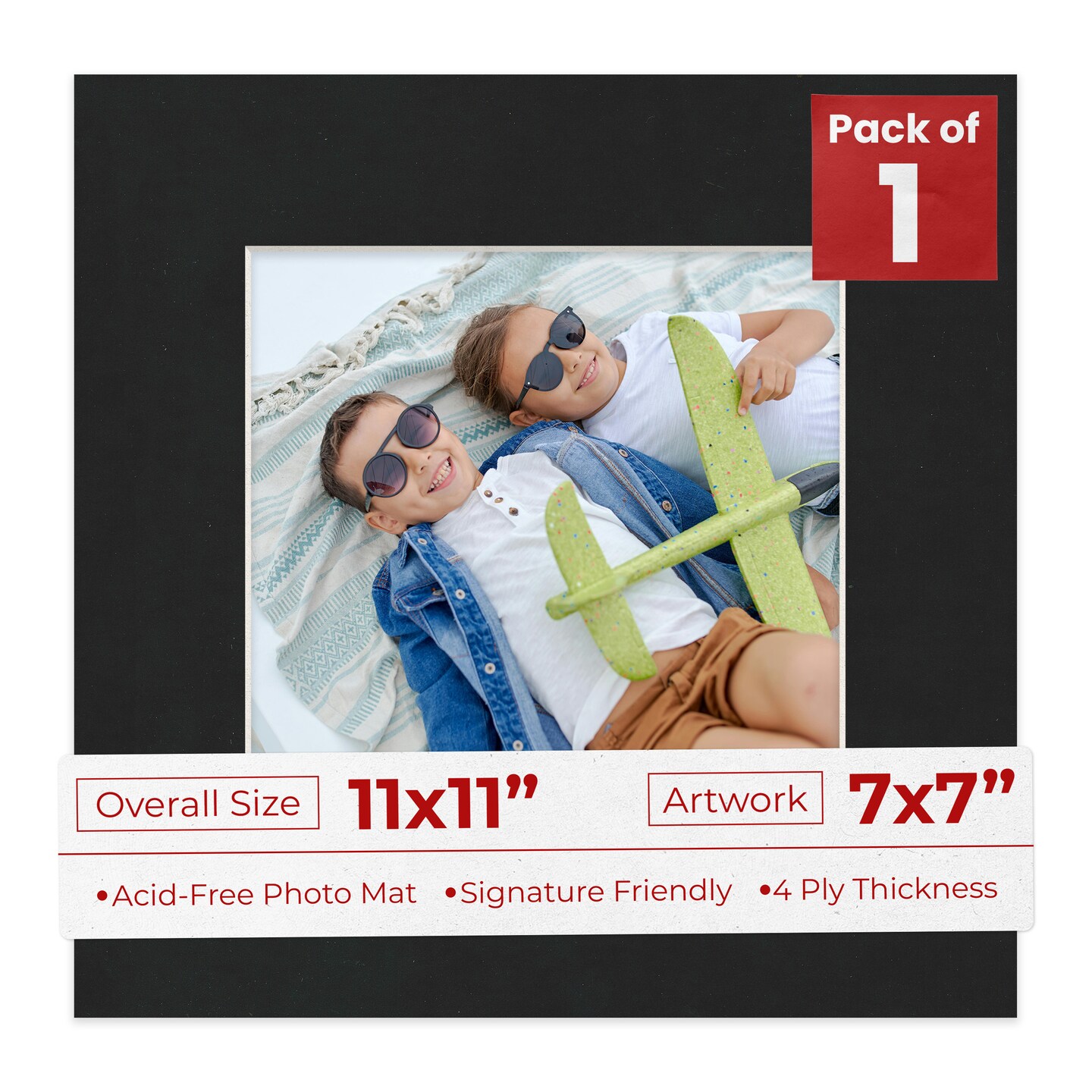 Black Suede Mat Board for 11x11 Frames - Fits 7x7 Photos