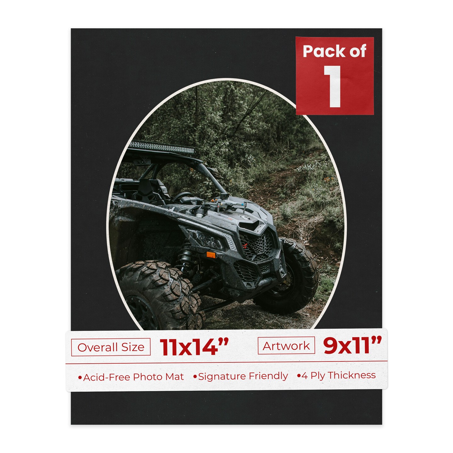 Black Suede Mat Board for 11x14 Frames - Oval Opening for 9x11 Photos
