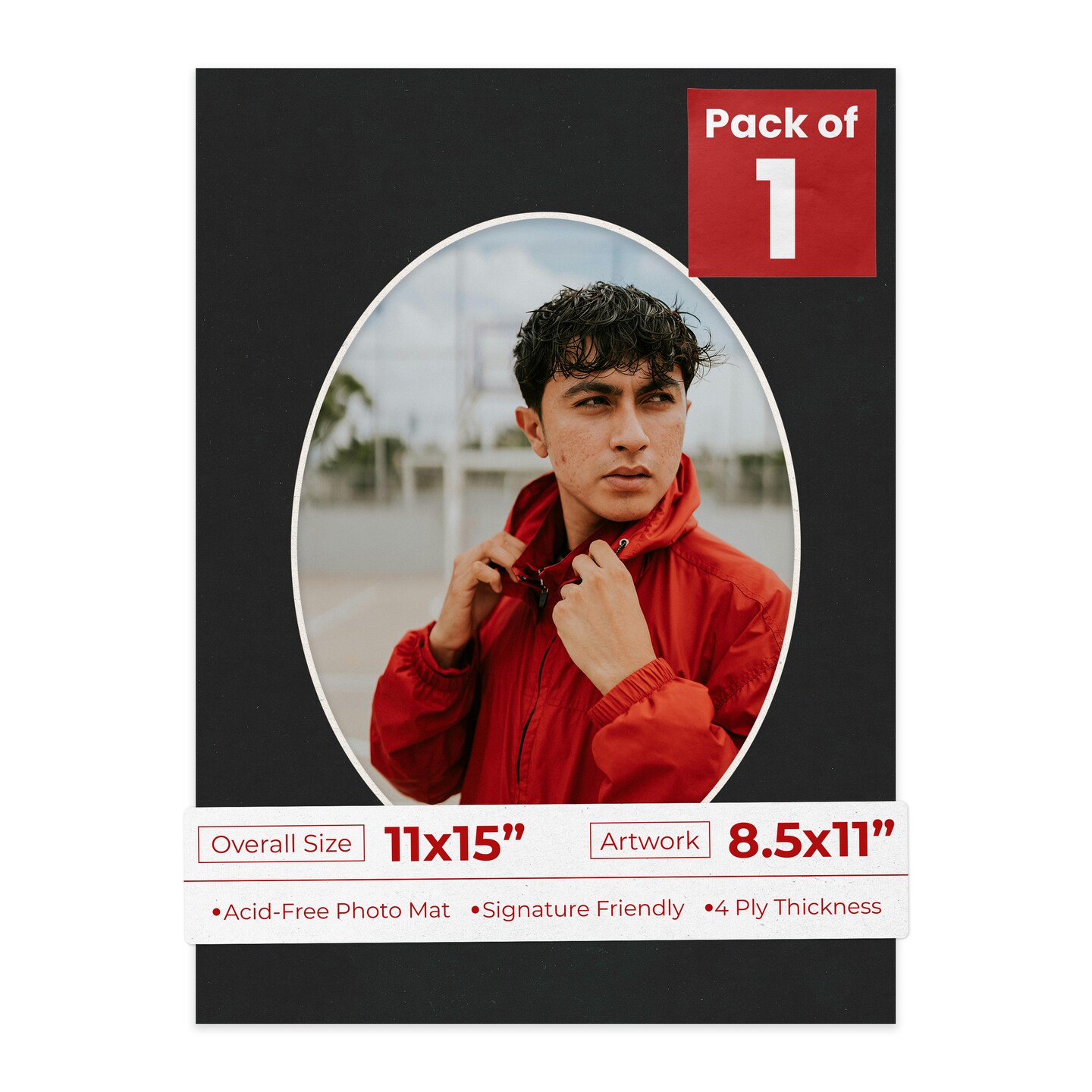 Black Suede Mat Board for 11x15 Frames - Oval Opening for 8.5x11 Photos