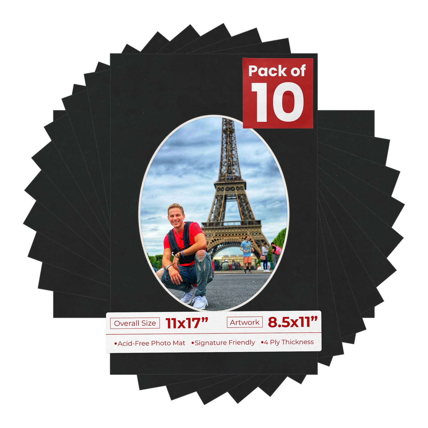 Black Suede Mat Board for 11x17 Frames - Oval Opening for 8.5x11 Photos
