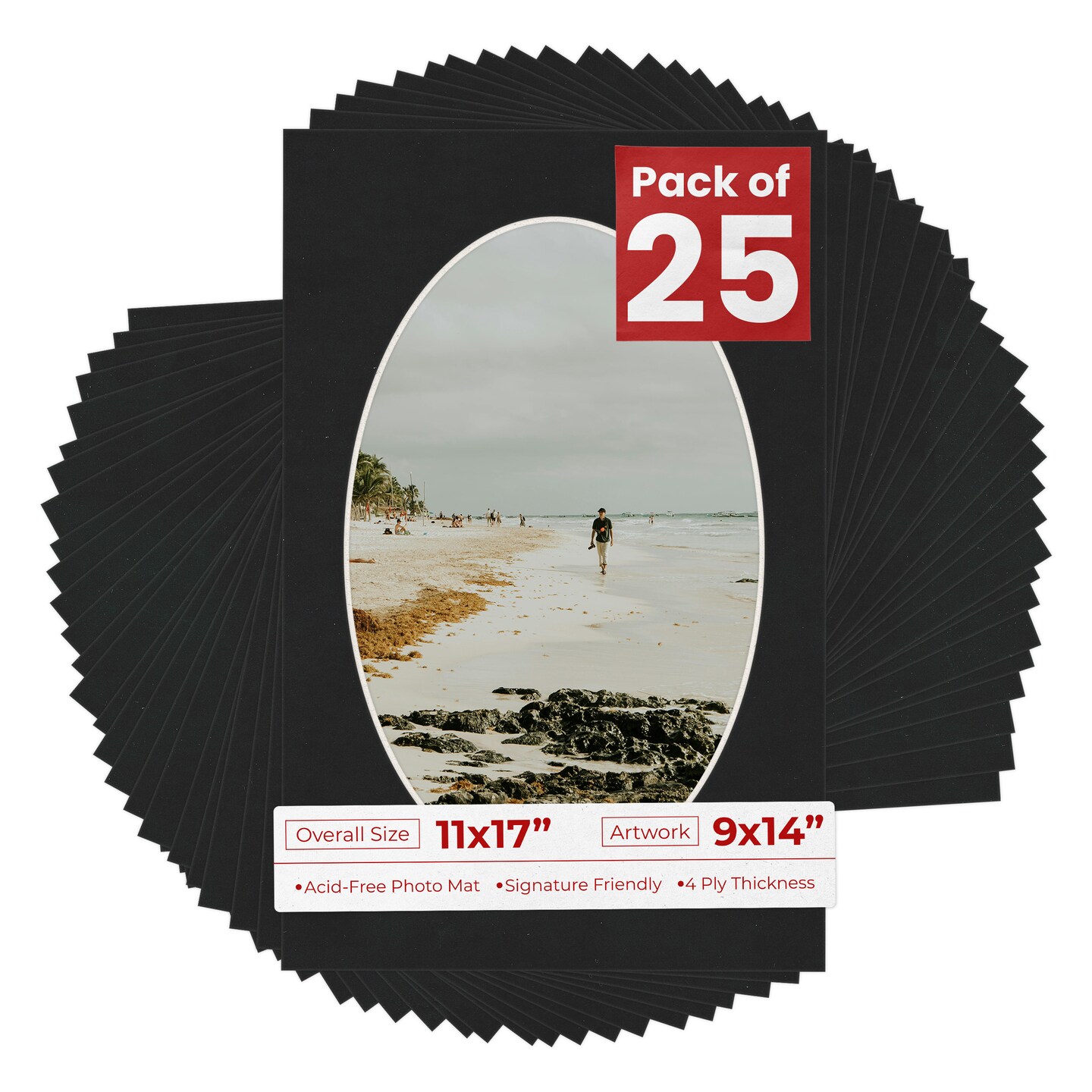 Black Suede Mat Board for 11x17 Frames - Oval Opening for 9x14 Photos