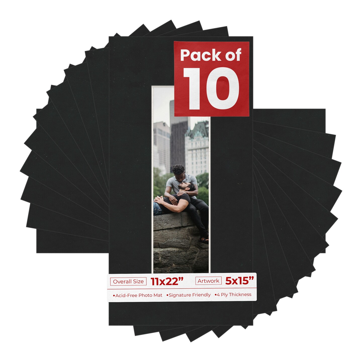 Black Suede Mat Board for 11x22 Frames - Fits 5x15 Photos