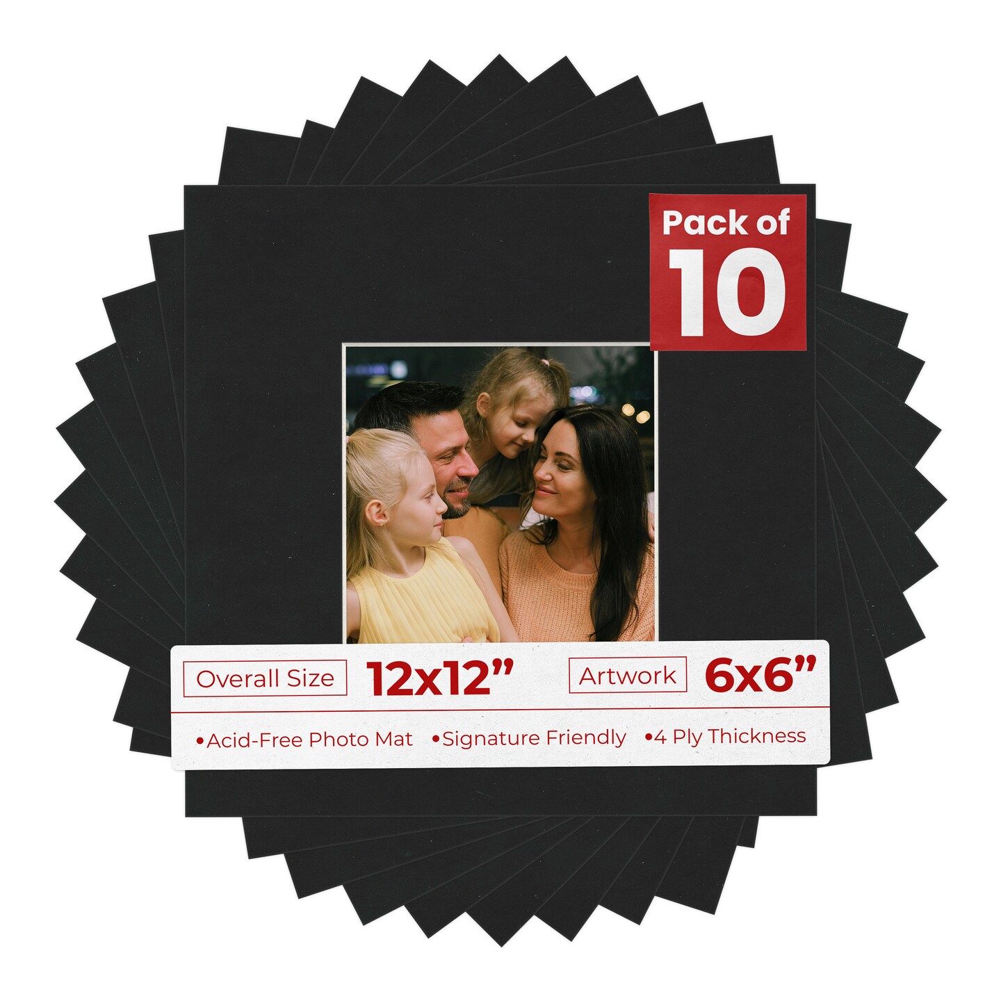 Black Suede Mat Board for 12x12 Frames - Fits 6x6 Photos