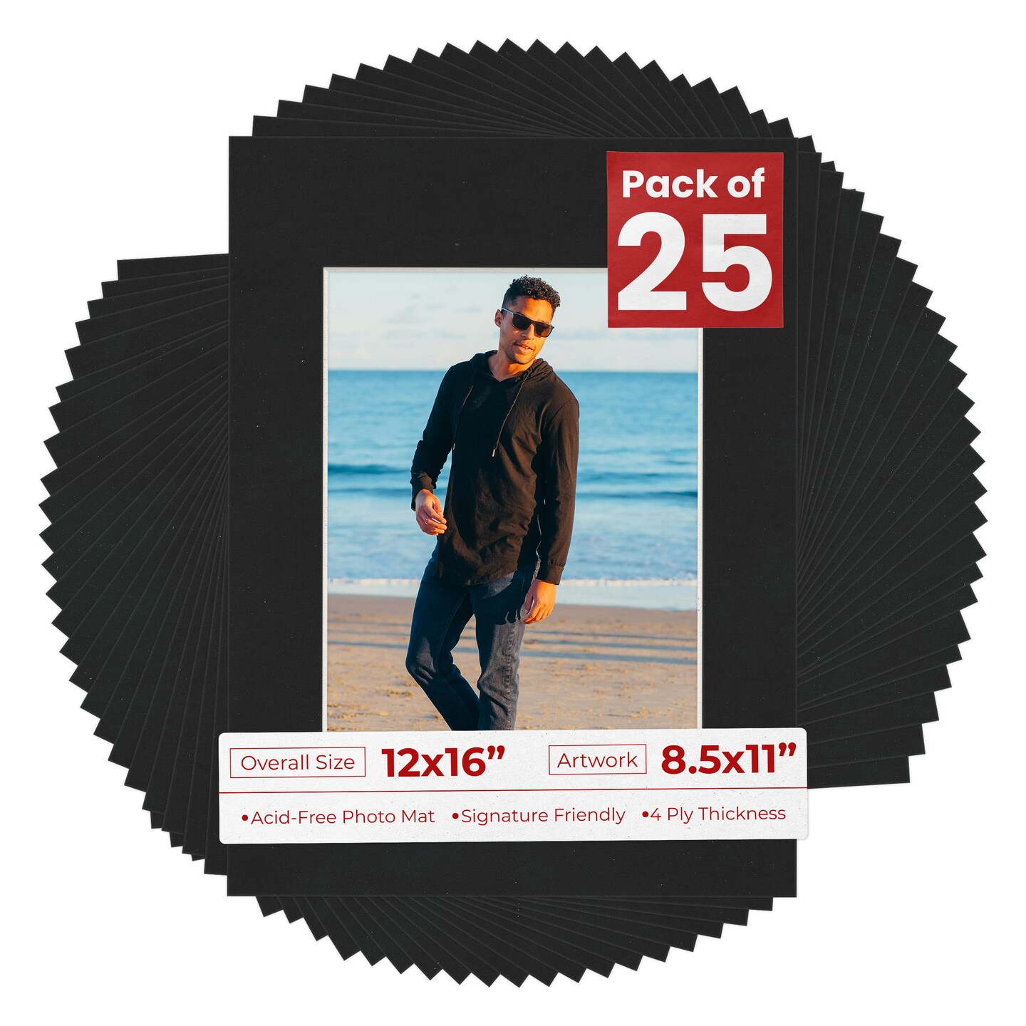 Black Suede Mat Board for 12x16 Frames - Fits 8.5x11 Photos