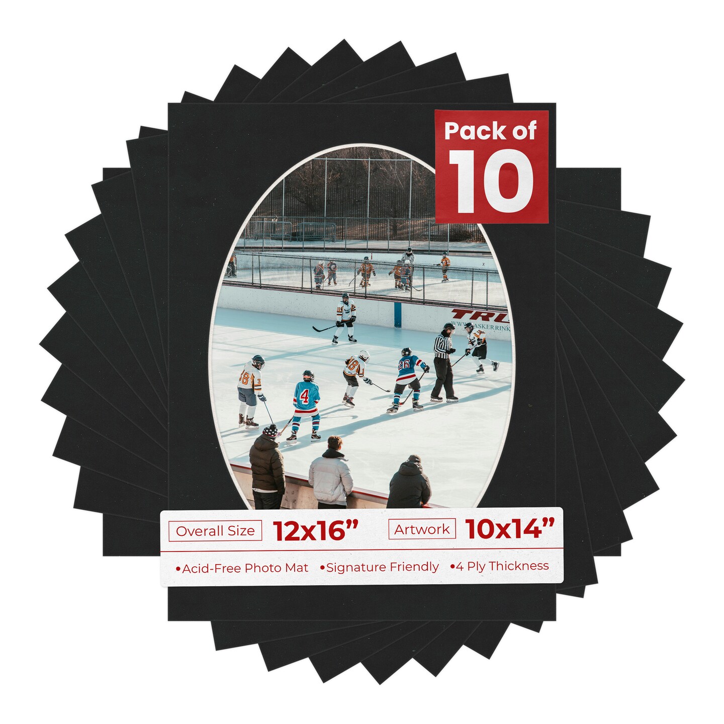 Black Suede Mat Board for 12x16 Frames - Oval Opening for 10x14 Photos