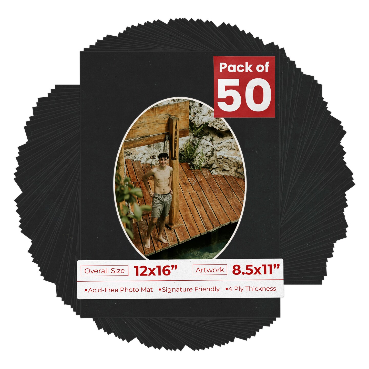 Black Suede Mat Board for 12x16 Frames - Oval Opening for 8.5x11 Photos