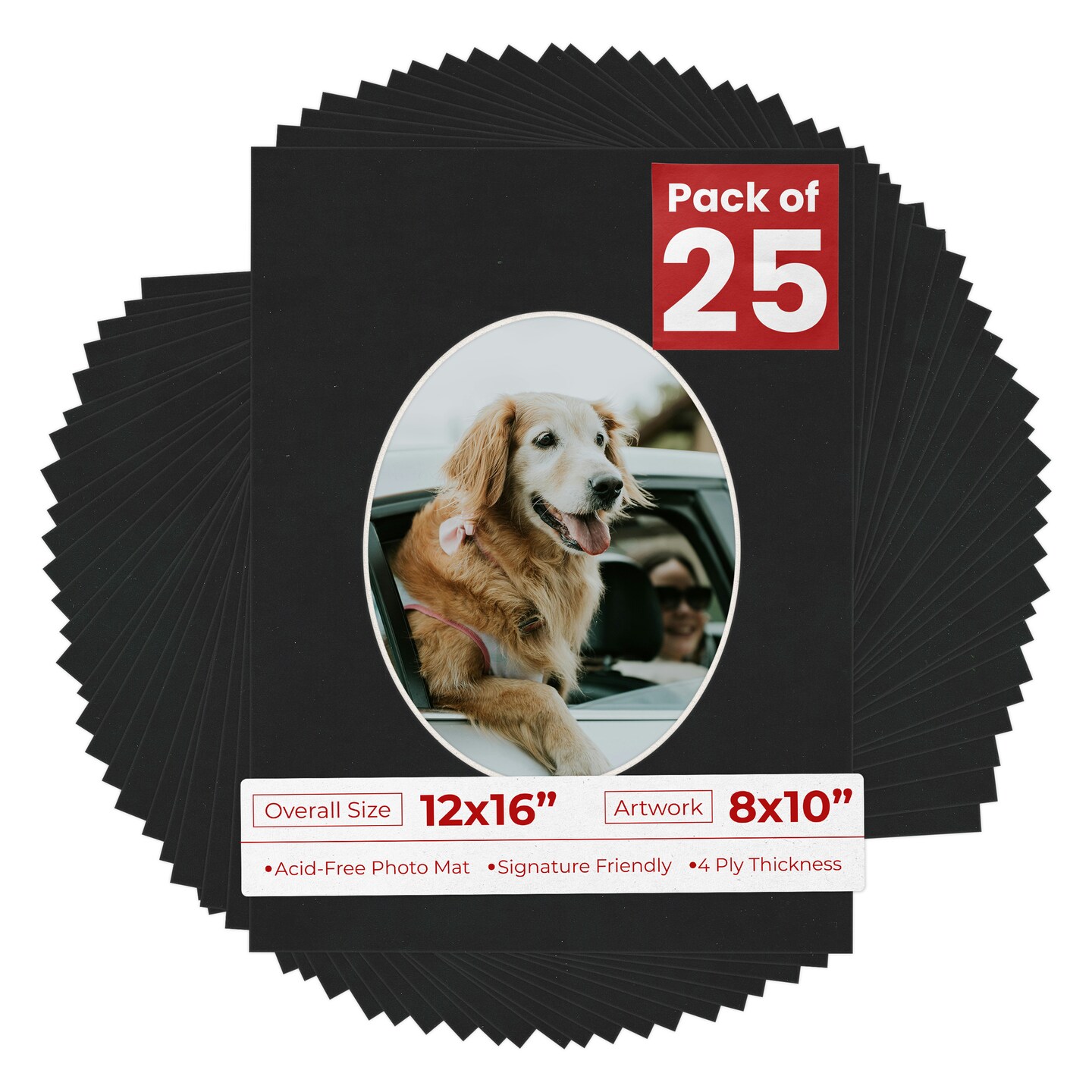 Black Suede Mat Board for 12x16 Frames - Oval Opening for 8x10 Photos
