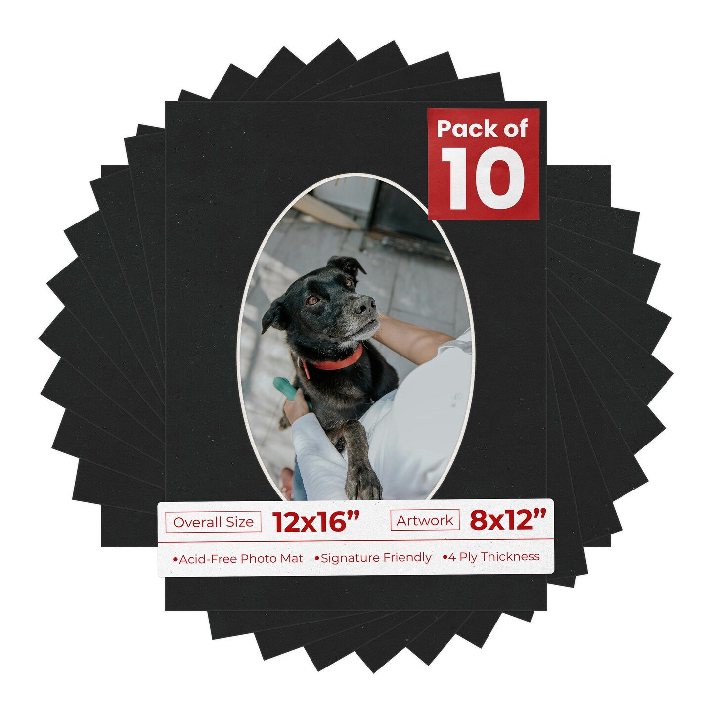Black Suede Mat Board for 12x16 Frames - Oval Opening for 8x12 Photos