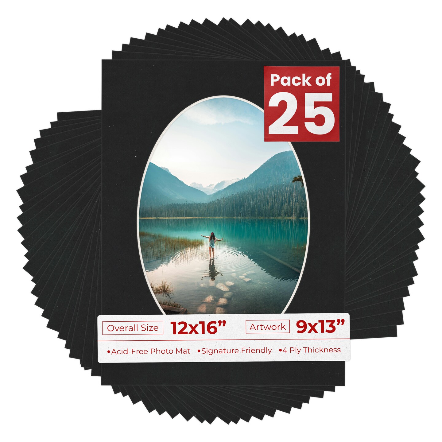 Black Suede Mat Board for 12x16 Frames - Oval Opening for 9x13 Photos