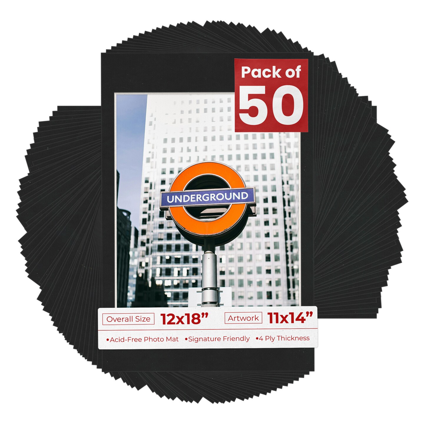 Black Suede Mat Board for 12x18 Frames - Fits 11x14 Photos