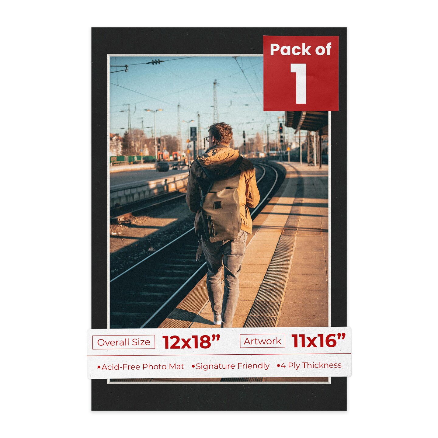 Black Suede Mat Board for 12x18 Frames - Fits 11x16 Photos