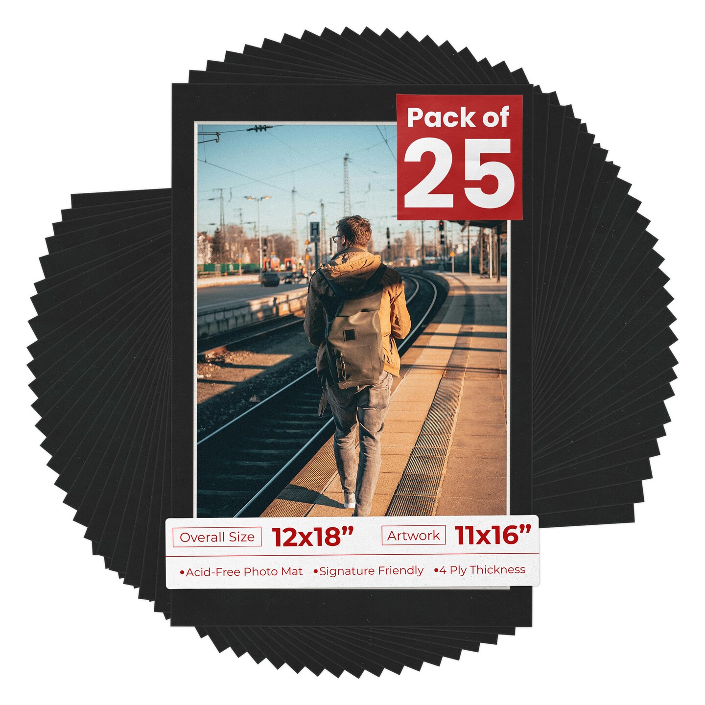 Black Suede Mat Board for 12x18 Frames - Fits 11x16 Photos