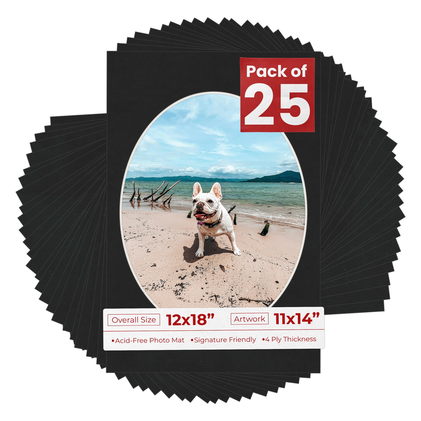 Black Suede Mat Board for 12x18 Frames - Oval Opening for 11x14 Photos