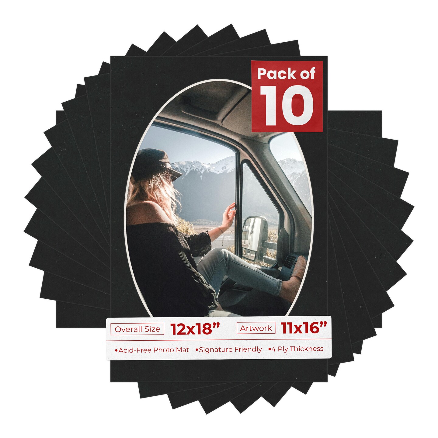 Black Suede Mat Board for 12x18 Frames - Oval Opening for 11x16 Photos