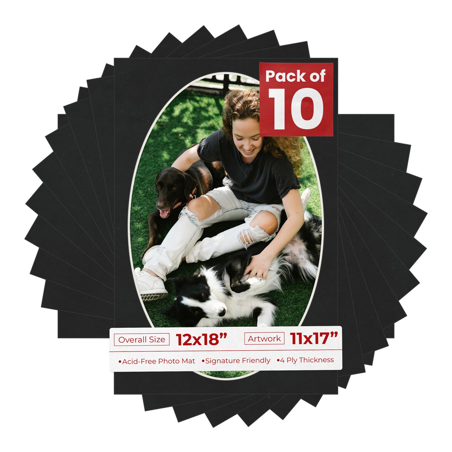Black Suede Mat Board for 12x18 Frames - Oval Opening for 11x17 Photos