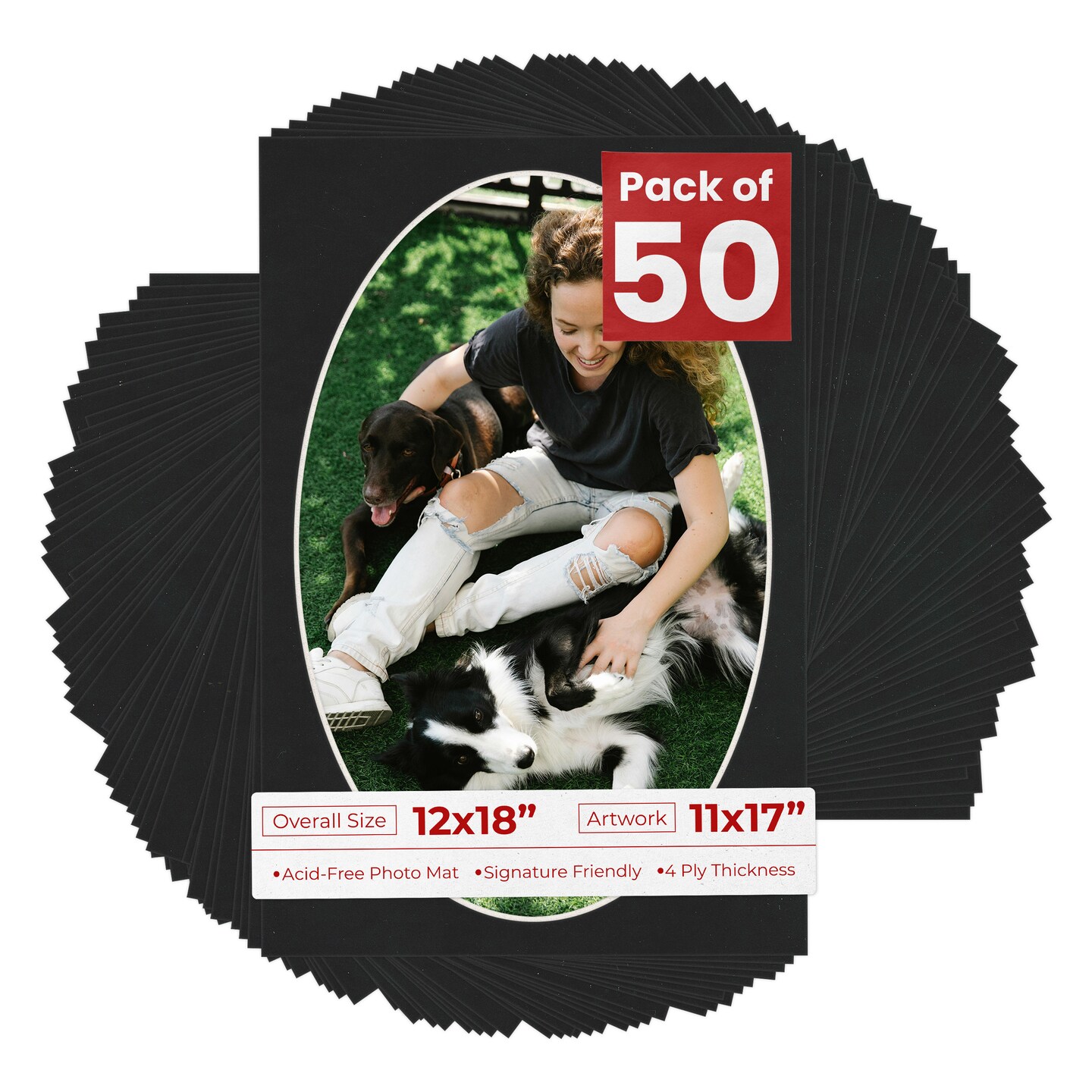 Black Suede Mat Board for 12x18 Frames - Oval Opening for 11x17 Photos