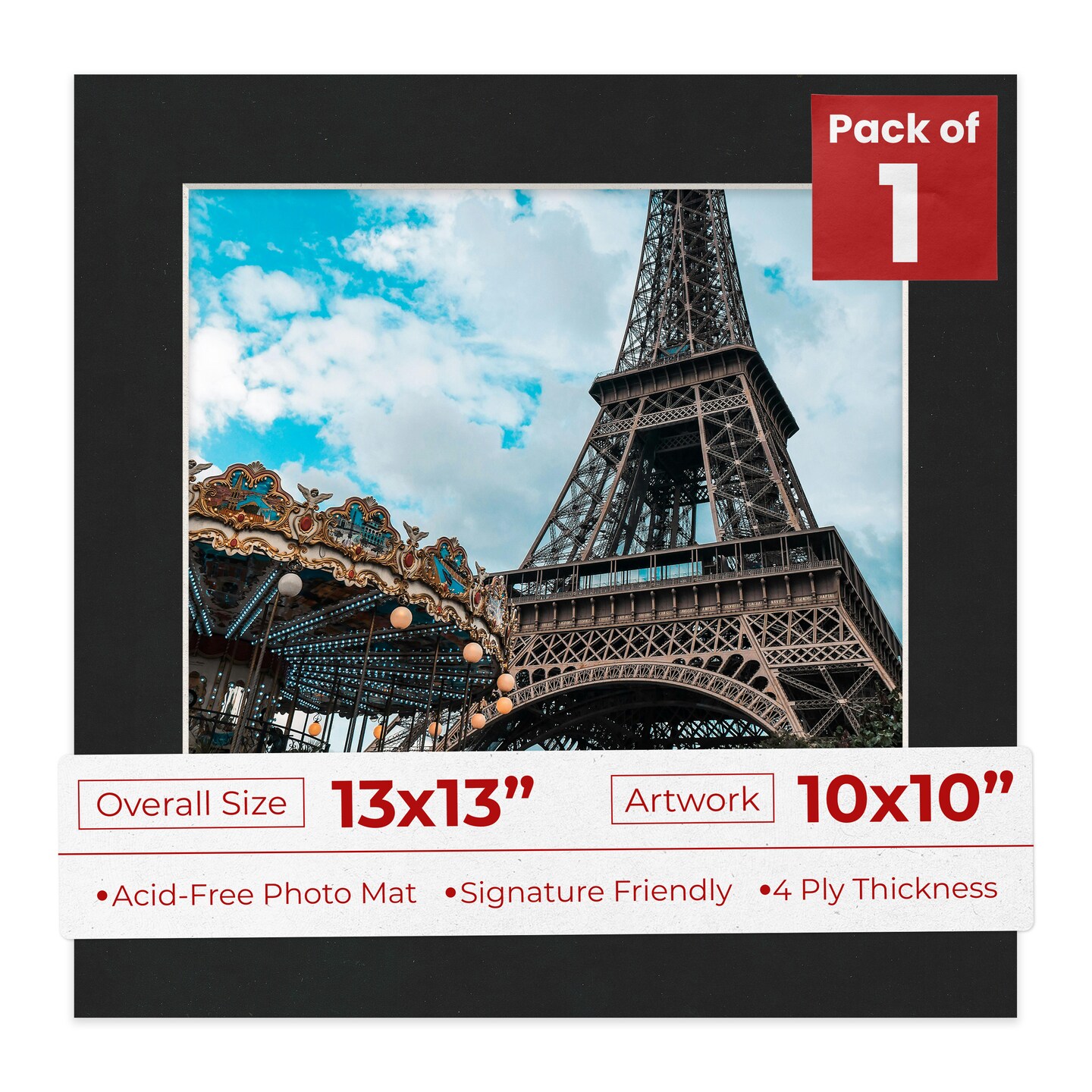 Black Suede Mat Board for 13x13 Frames - Fits 10x10 Photos