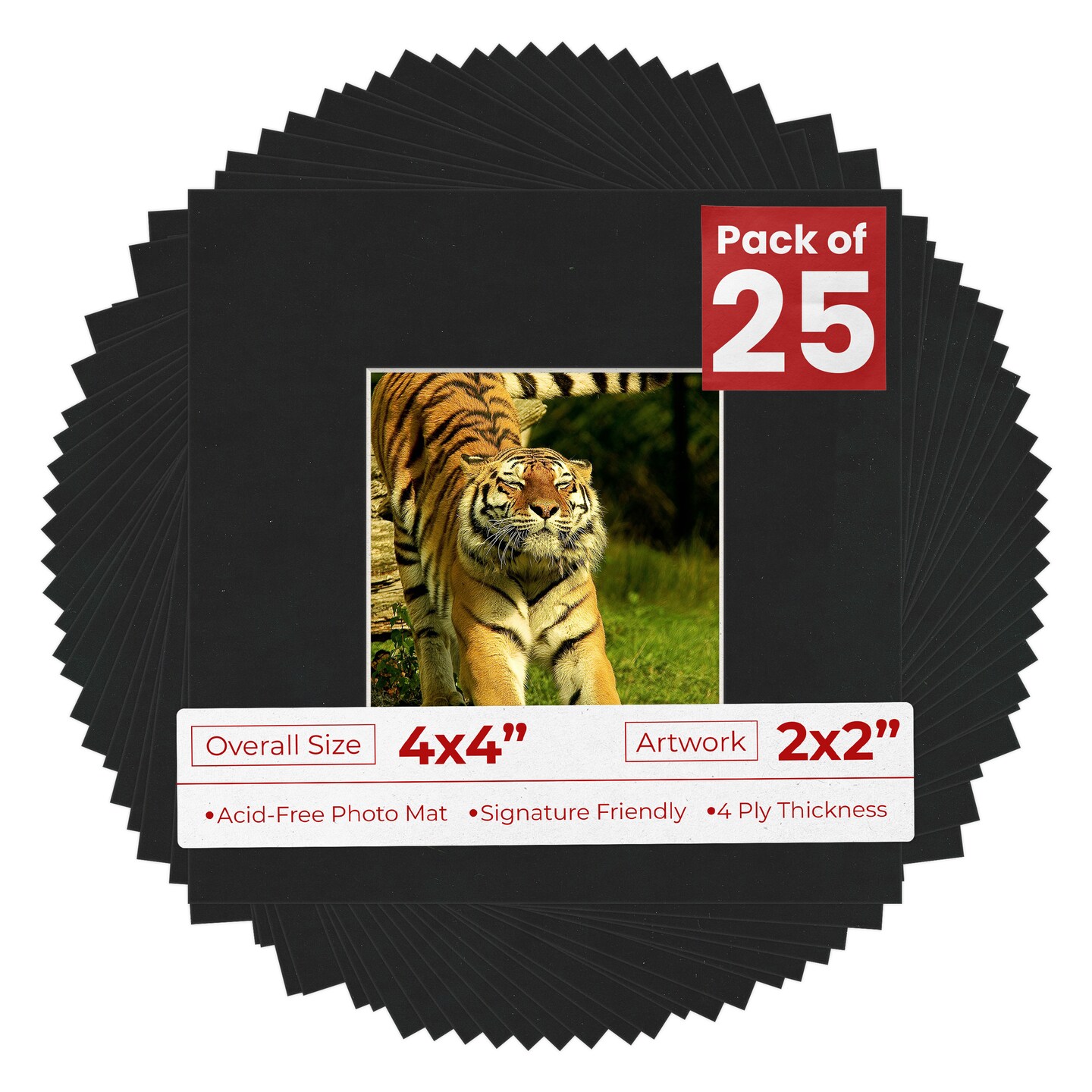 Black Suede Mat Board for 4x4 Inch Frames - Fits 2x2 Photos