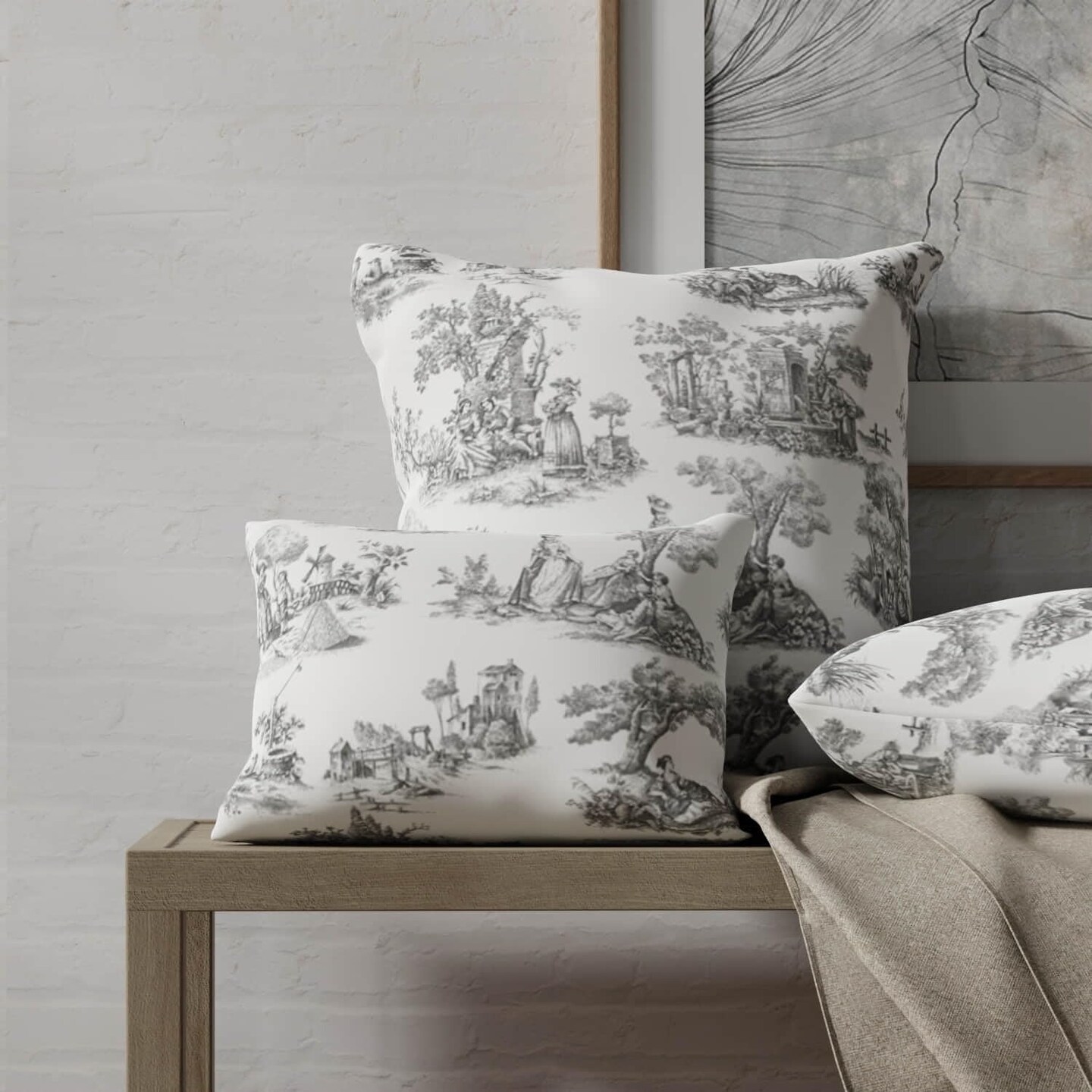 Black Toile Print Upholstery Fabric by The Yard - SKU: Blair Black