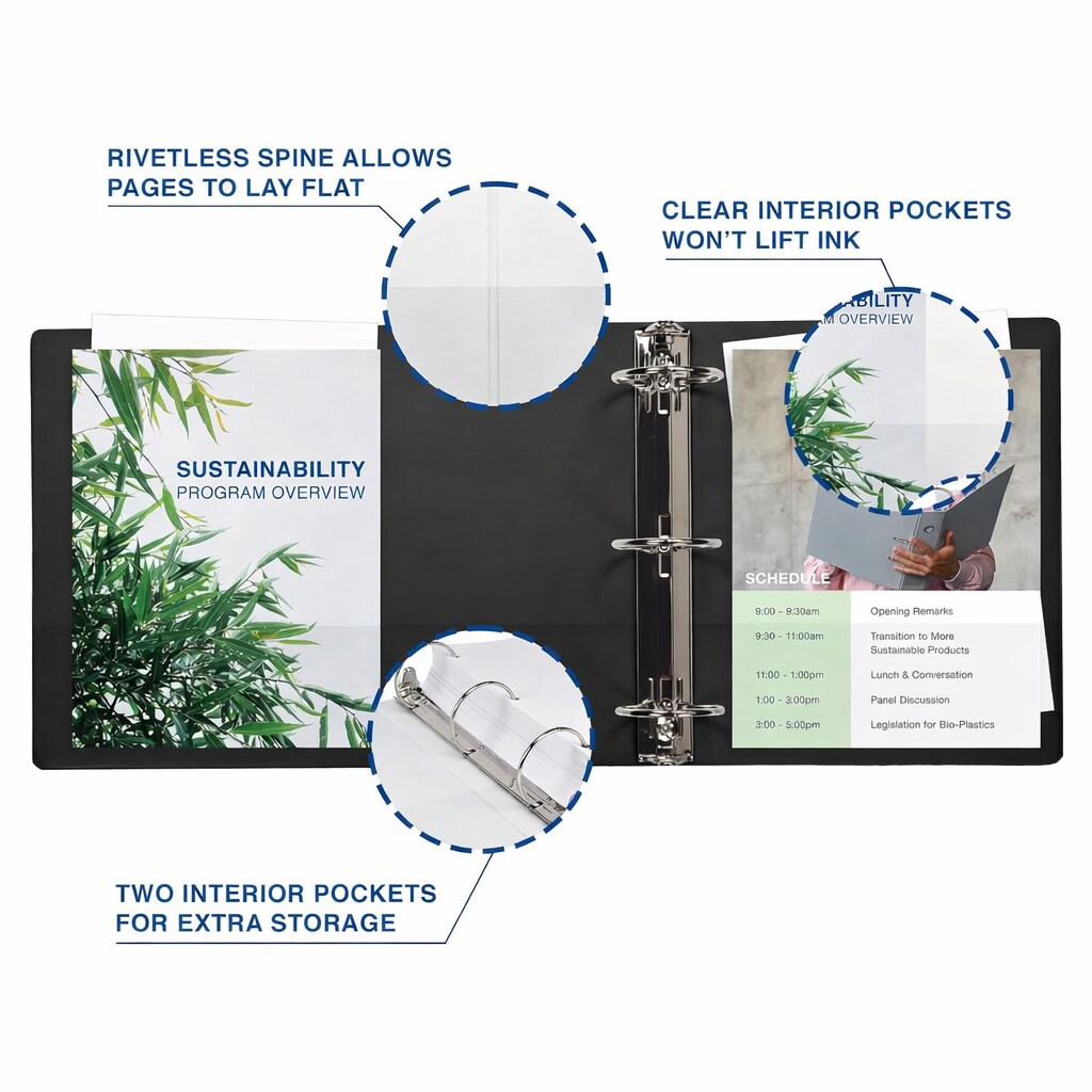 Black View Binder 0.5 Inch – 3 Ring Binder with Interior Pockets for School, Office, Classroom & Project Organization