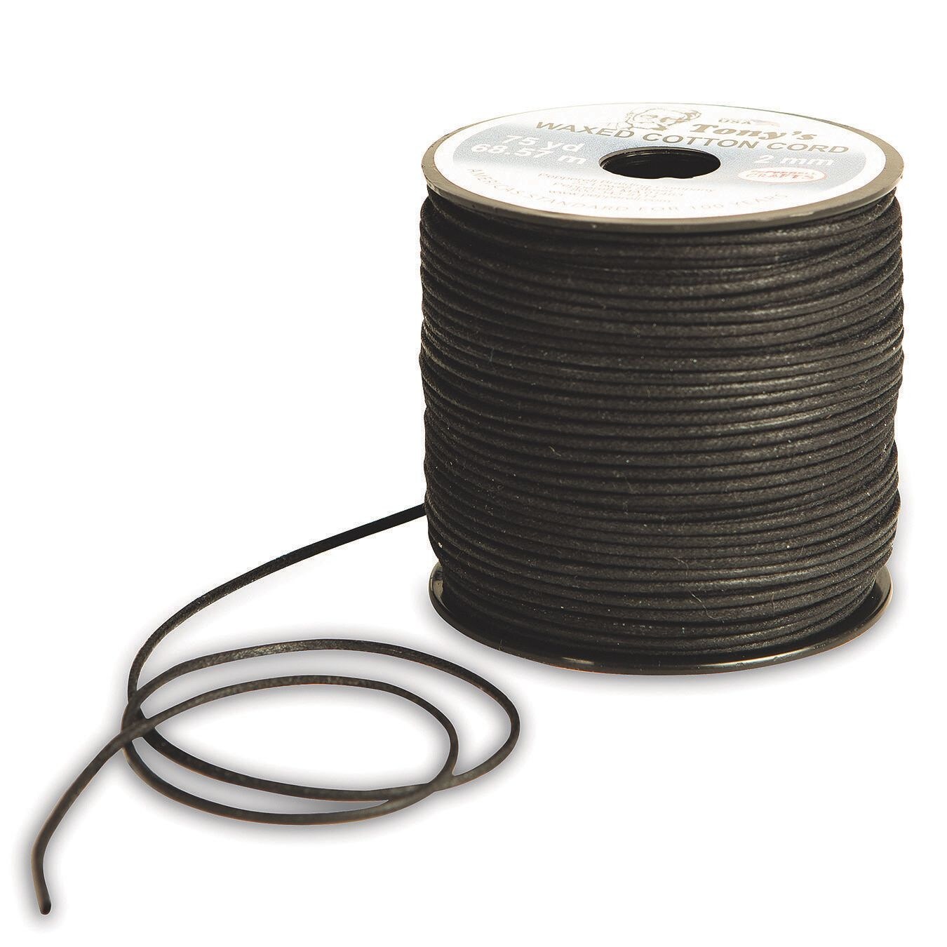 Black Waxed Cotton Cord, 2mm thick x 75 yards