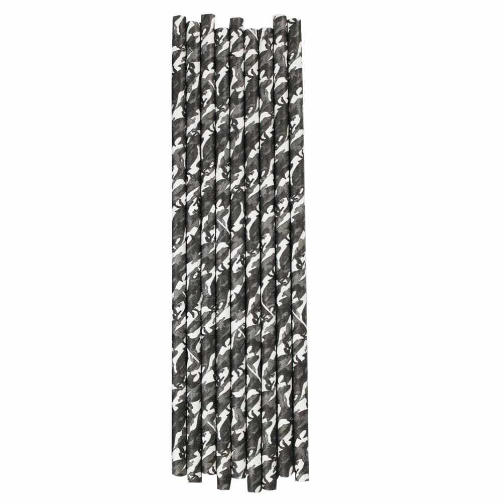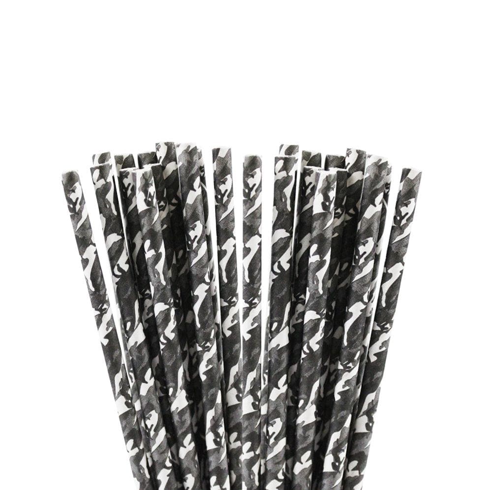 Black & White Camo Cake Pop Party Straws