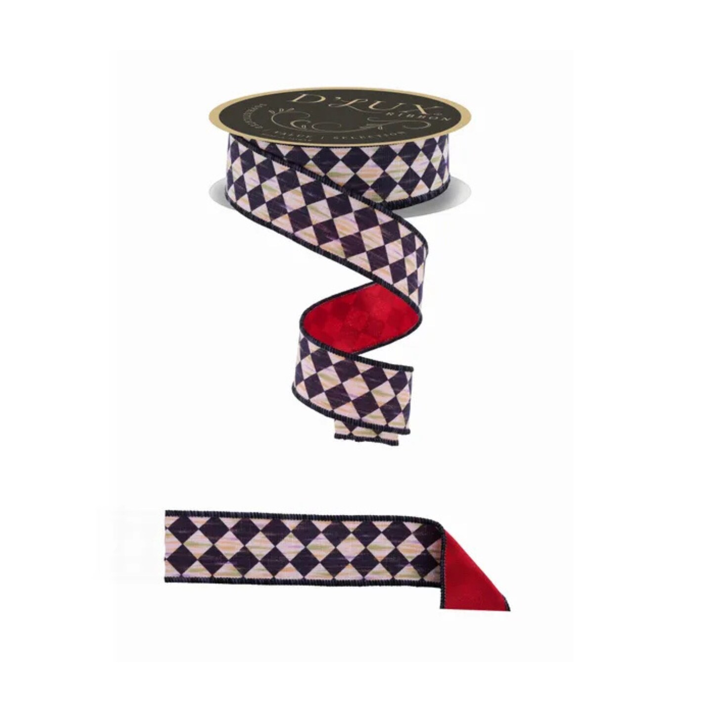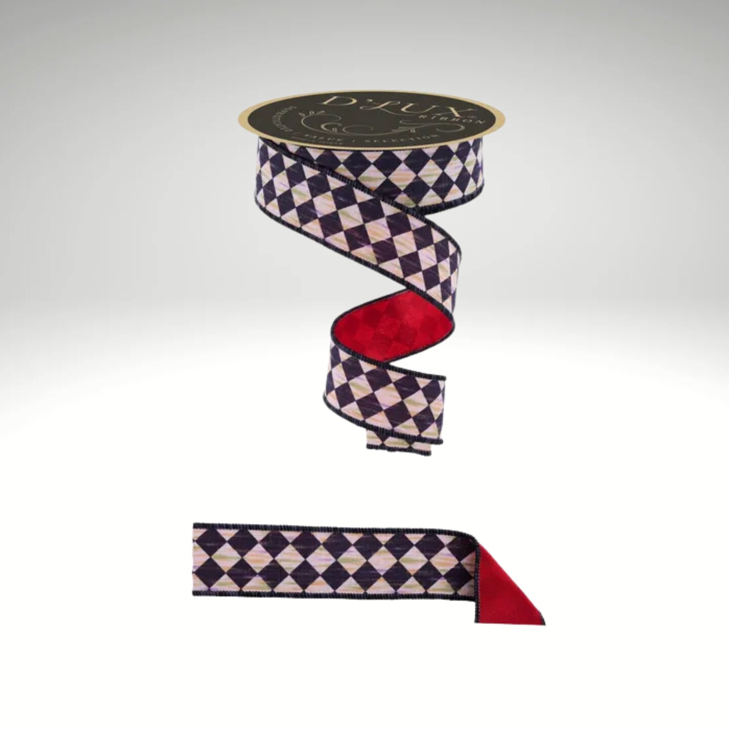 Black White Red Harlequin Double-Sided Wired Ribbon 1.5"x10yd-LX308924