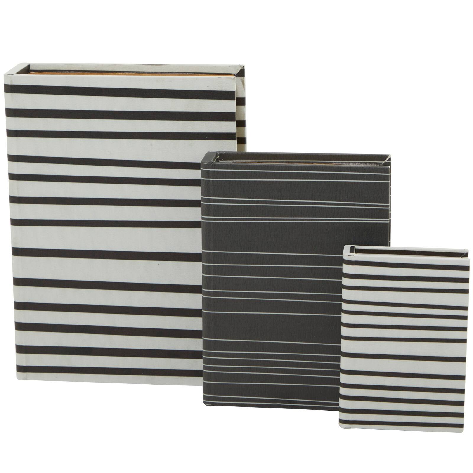 Black & White Stripe Faux Leather Faux Book Box with Striped Patterns Set