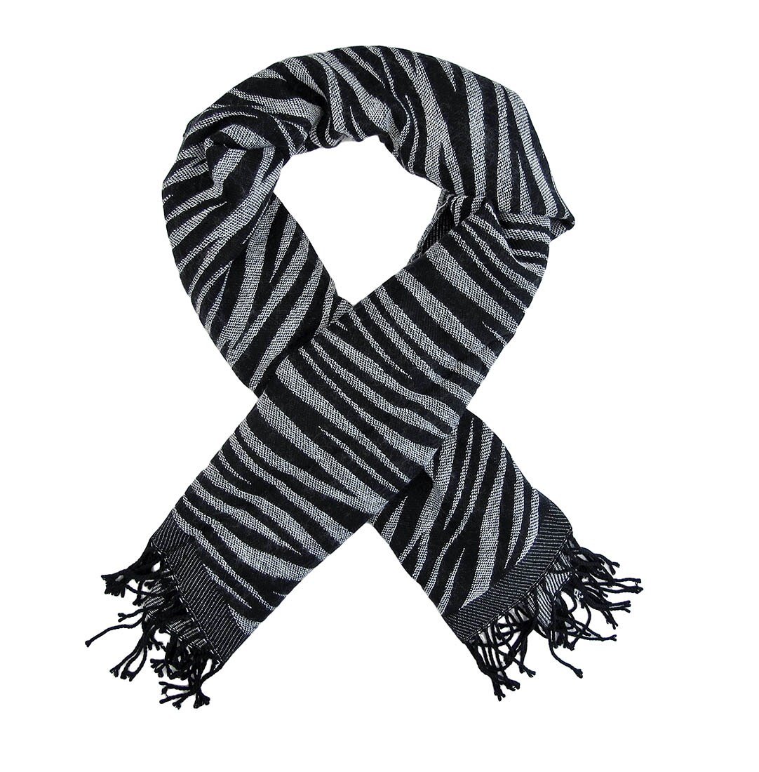 Black / White Zebra Stripe Scarf Shawl Fringed