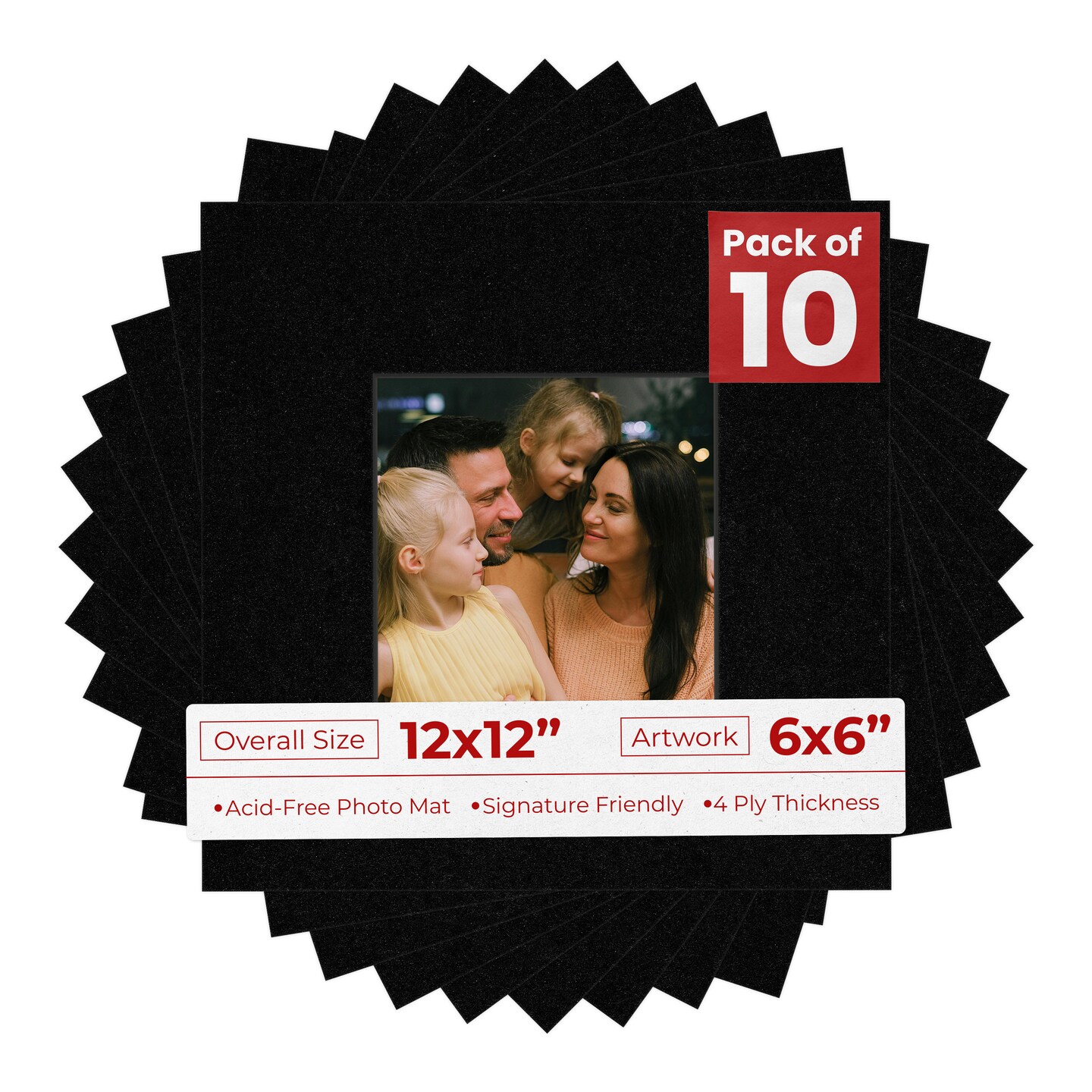 Black with Black Core Mat Board for 12x12 Frames - Fits 6x6 Photos