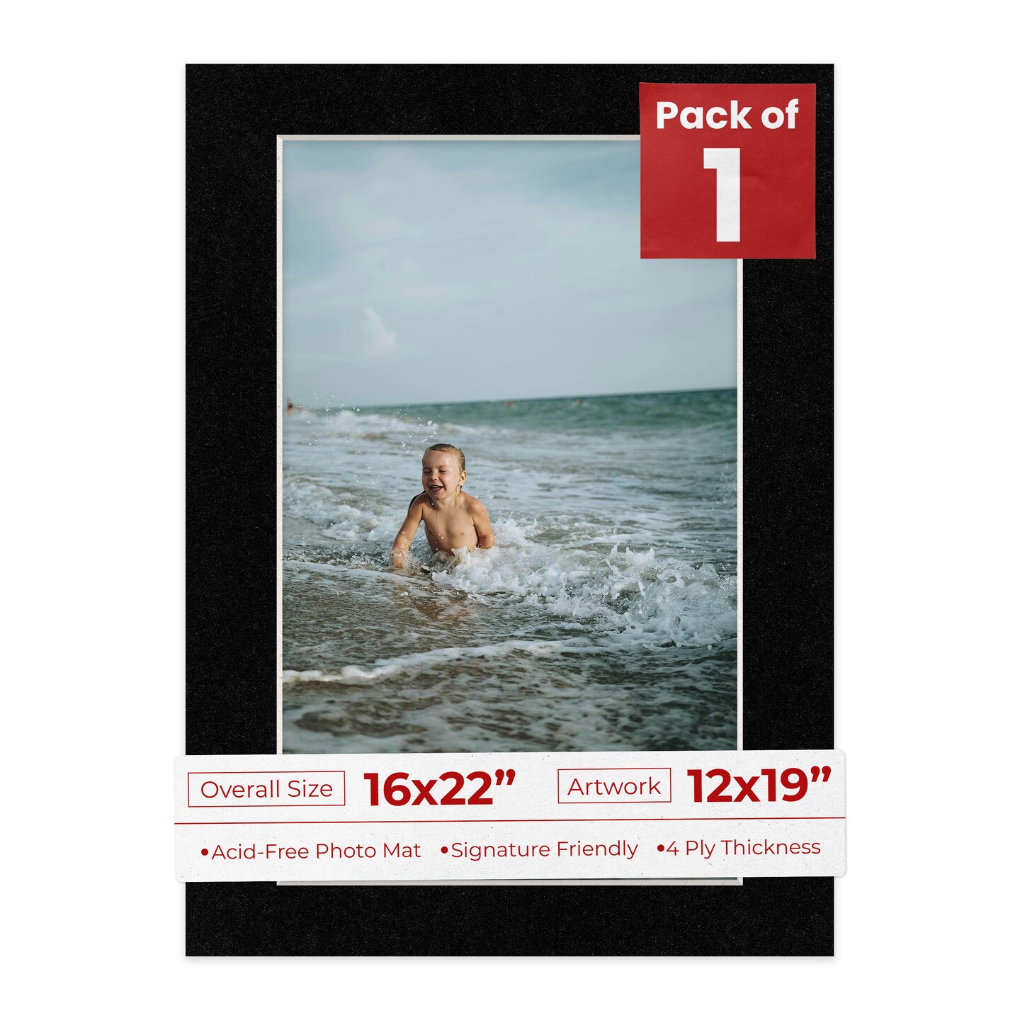 Black with Black Core Mat Board for 16x22 Frames - Fits 12x19 Photos