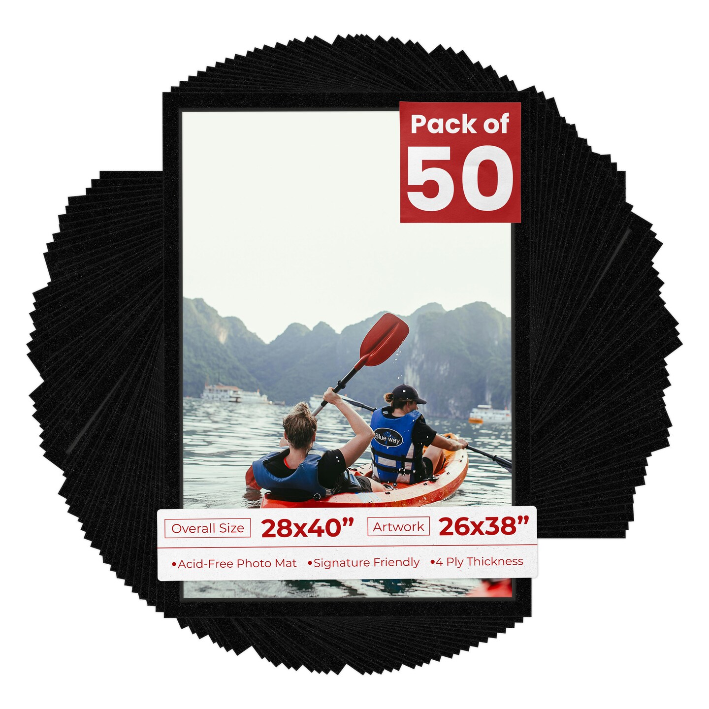 Black with Black Core Mat Board for 28x40 Frames - Fits 26x38 Photos
