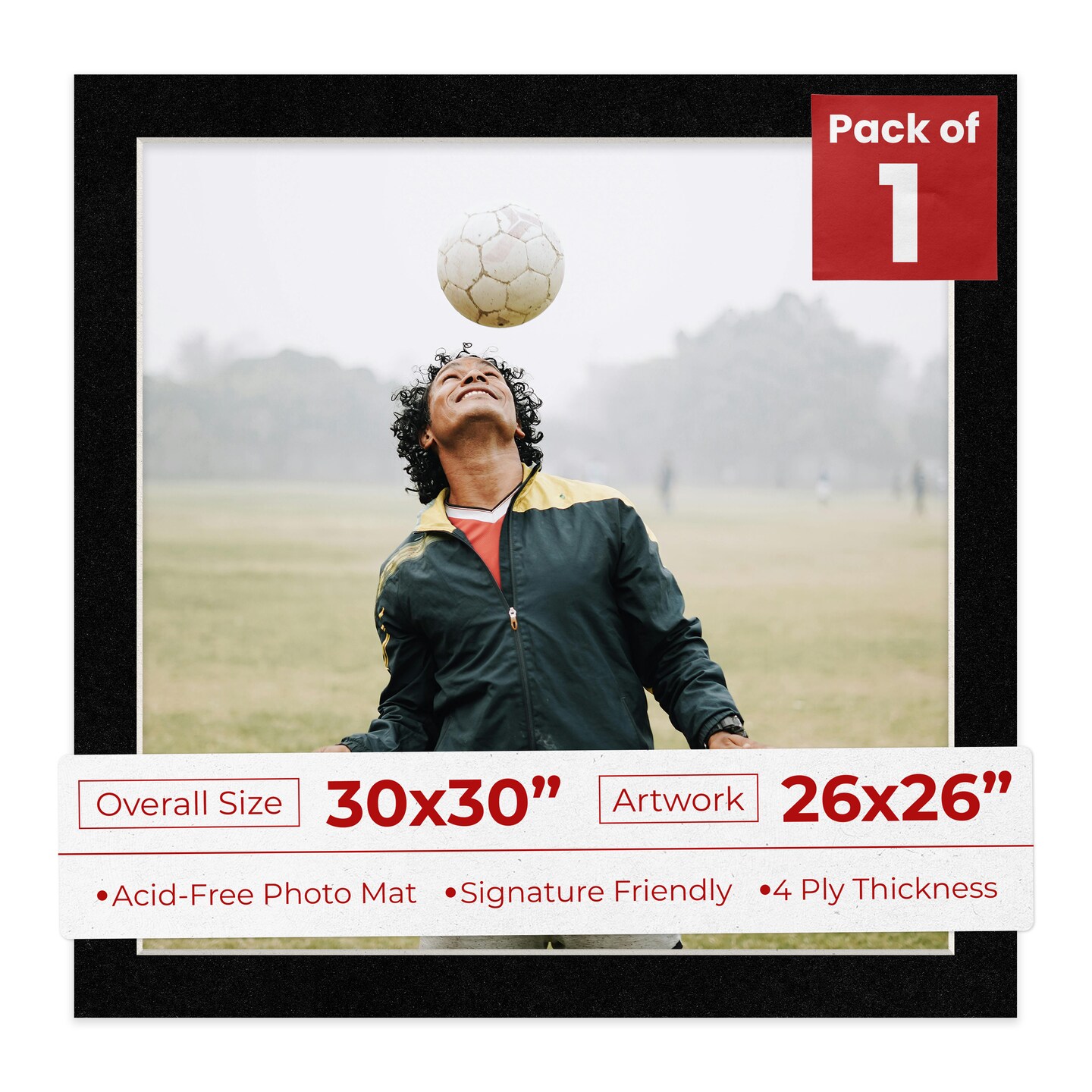 Black with Black Core Mat Board for 30x30 Frames - Fits 26x26 Photos