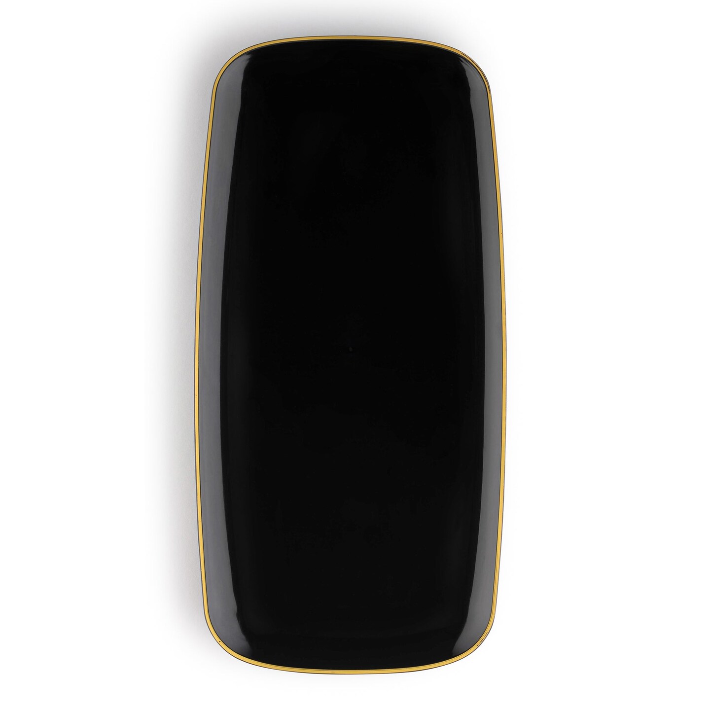 Black with Gold Rim Flat Raised Edge Rectangular Disposable Plastic Plates - 10.6" x 5" (120 Plates)