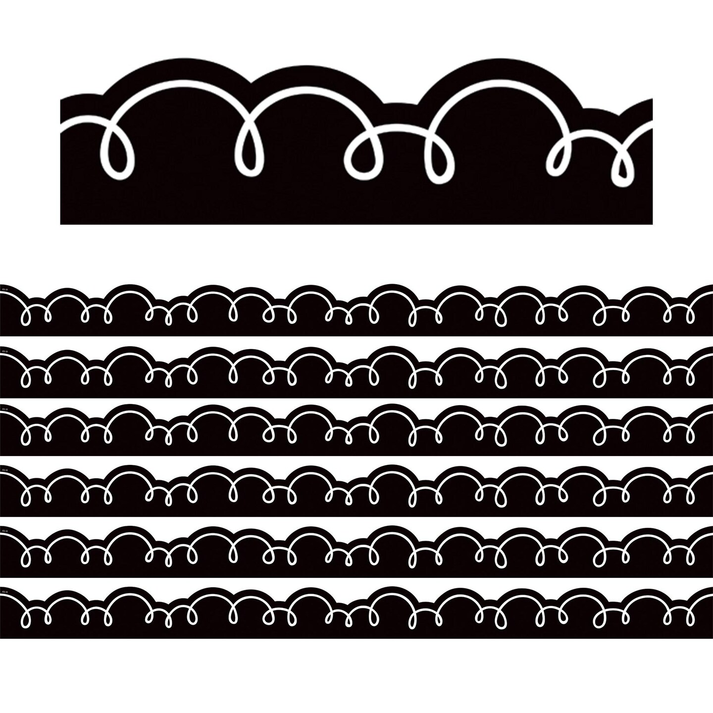 Black with White Squiggles Die-Cut Border Trim, 35 Feet Per Pack, 6 Packs