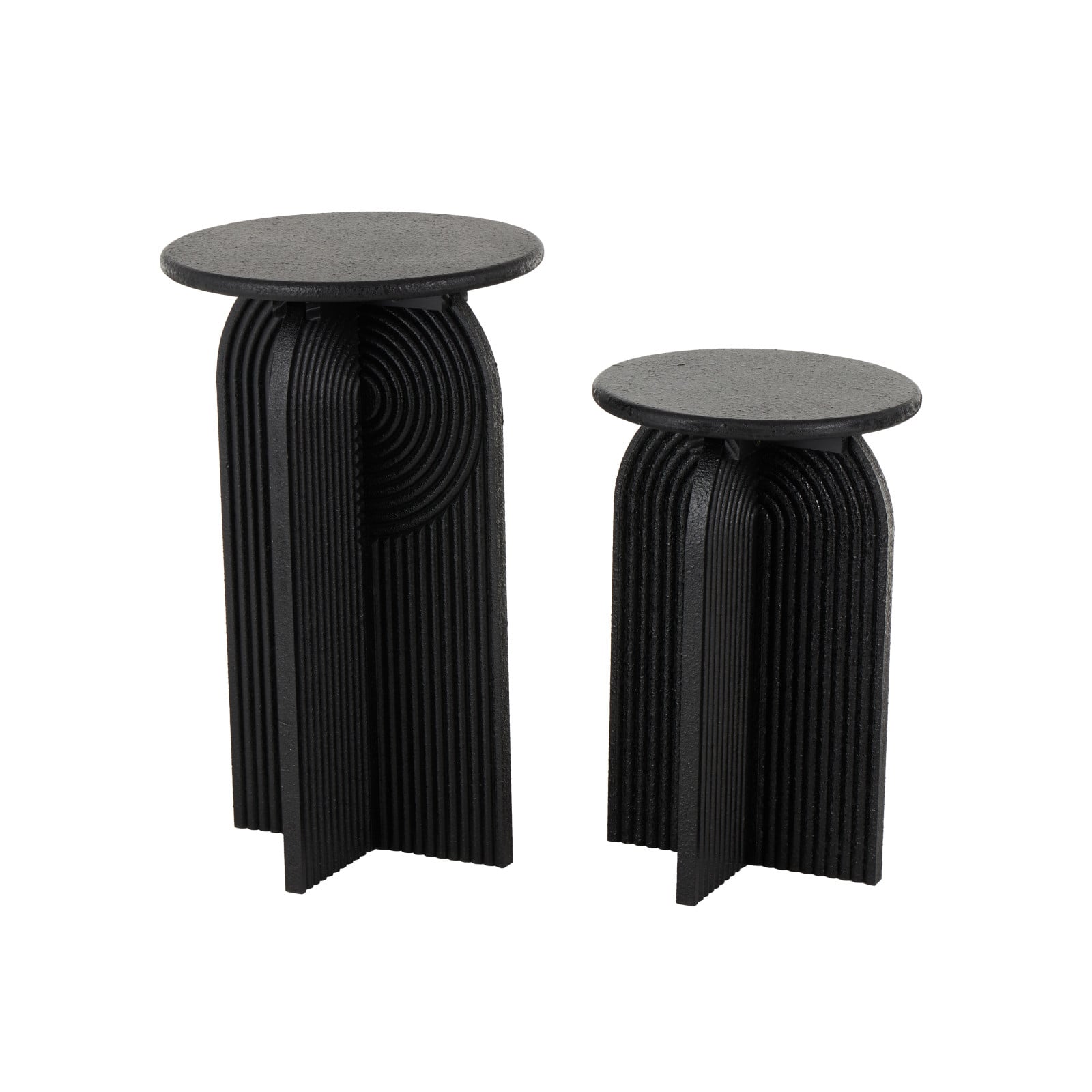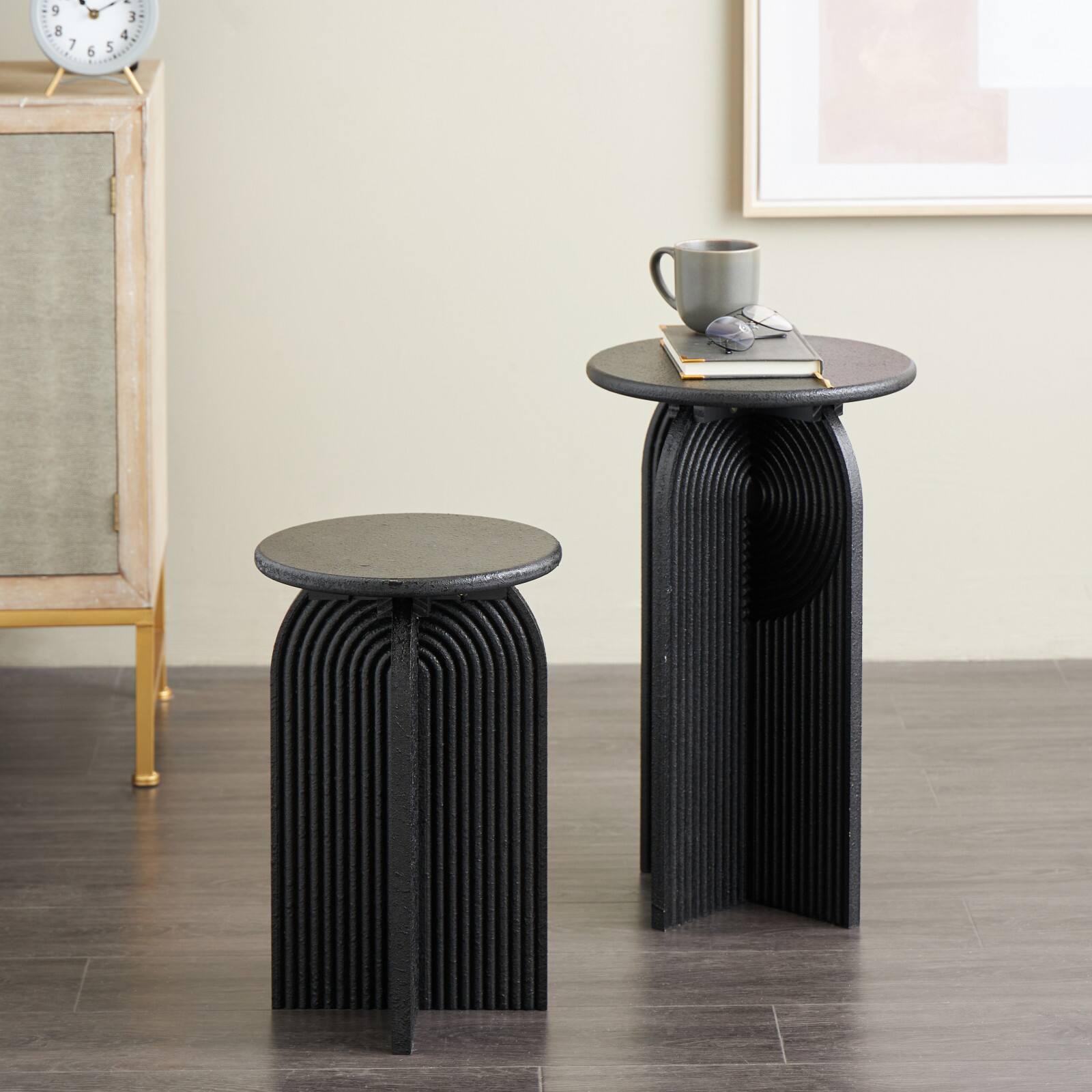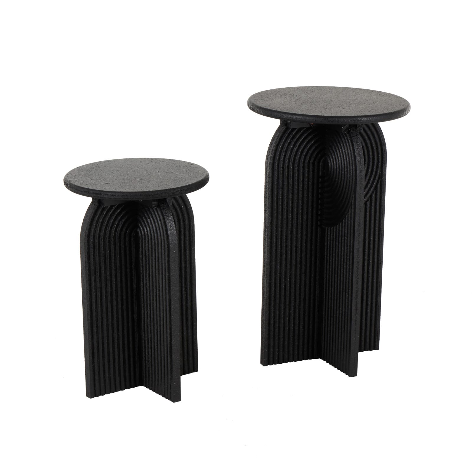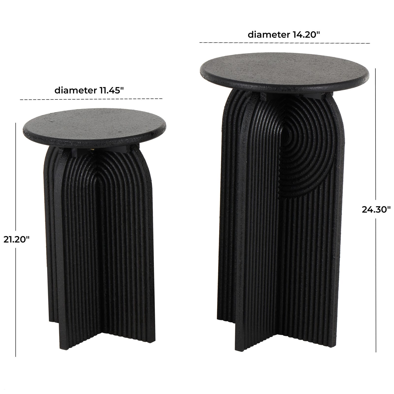 Black Wood Art Deco Carved Arched Pedestal Accent Table Set