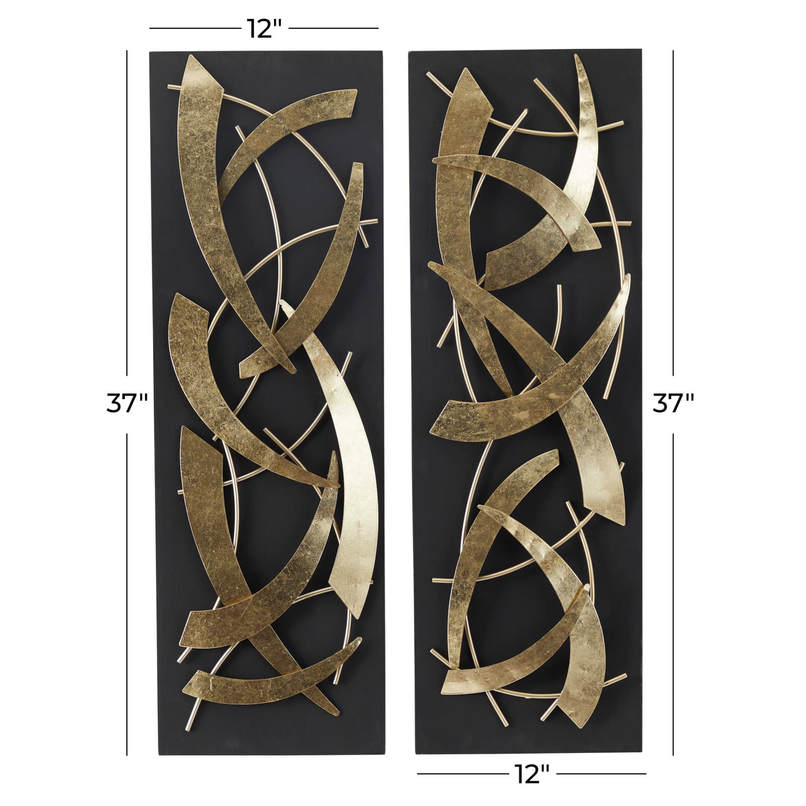 Black Wood Contemporary Wall Decor, Set of 2 36" x 12" x 2"